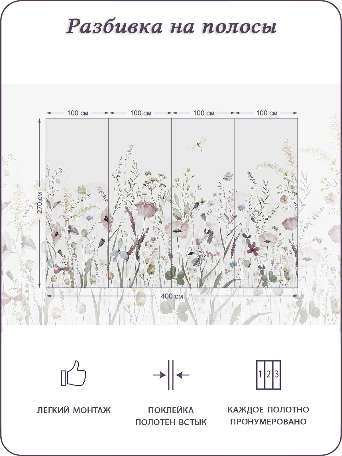 Купить Фотообои на стену флизелиновые 3d Полевые Цветы Бабочки 400х270 см Bartonwall K285-G