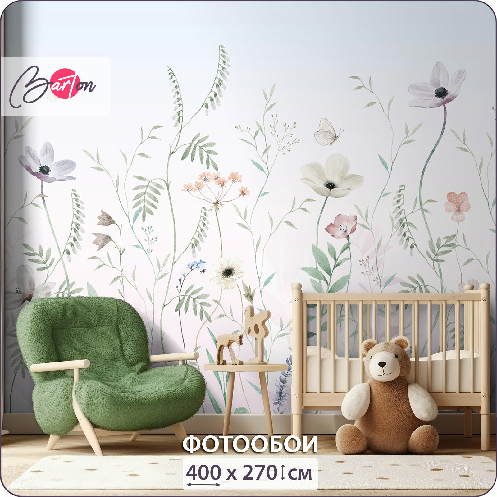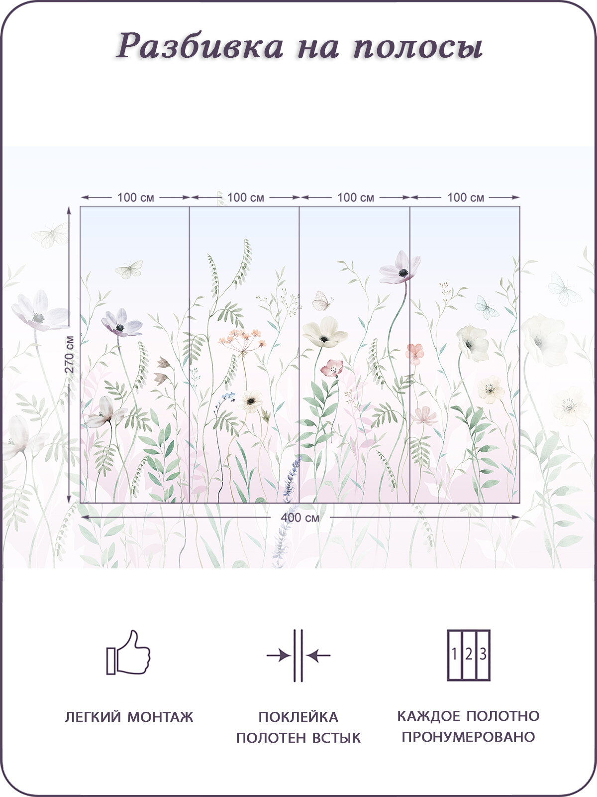 Купить Фотообои на стену флизелиновые 3d Детские Цветы Бабочки 400х270 см Bartonwall K320_P