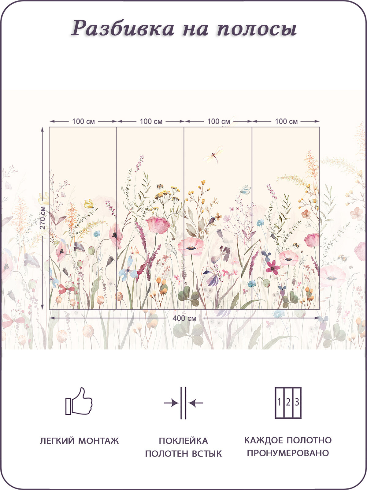 Купить Фотообои на стену флизелиновые 3d Полевые Цветы Бабочки 400х270 см Bartonwall K285-B