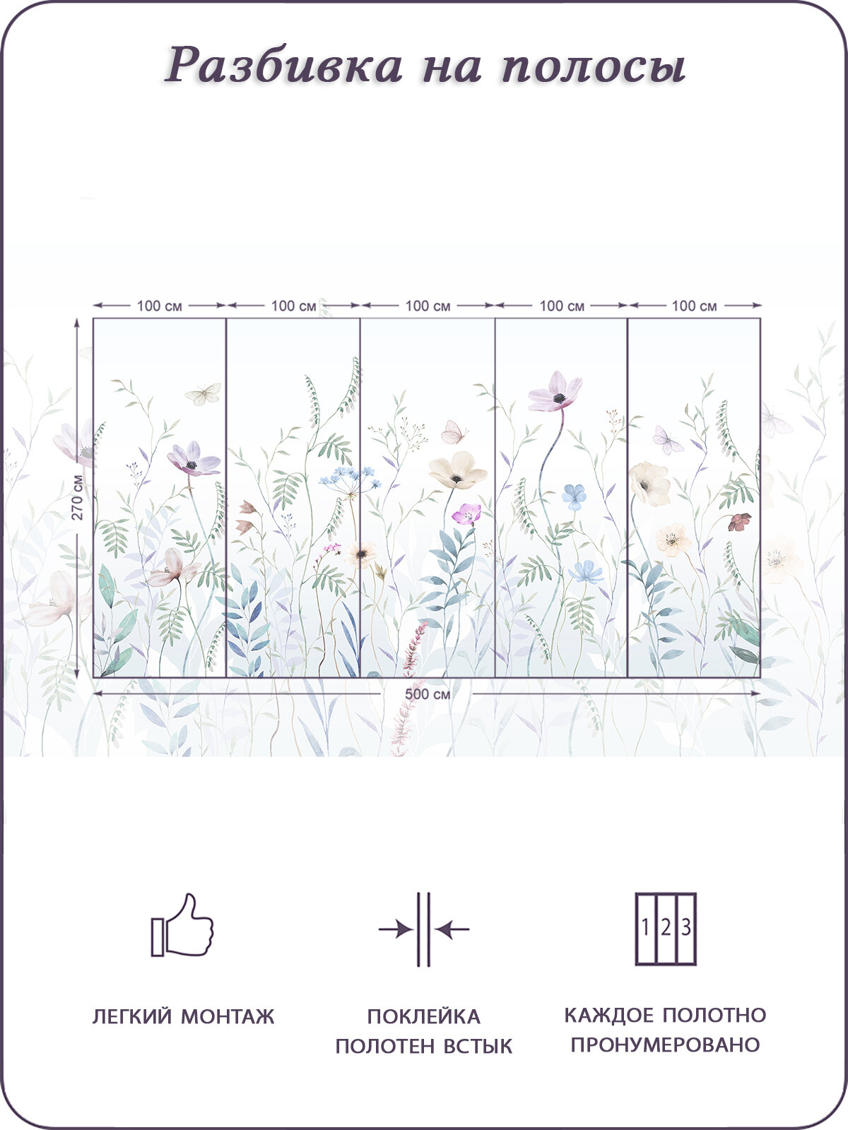 Купить Фотообои на стену флизелиновые 3d Детские Цветы Бабочки 500х270 см Bartonwall K320_C