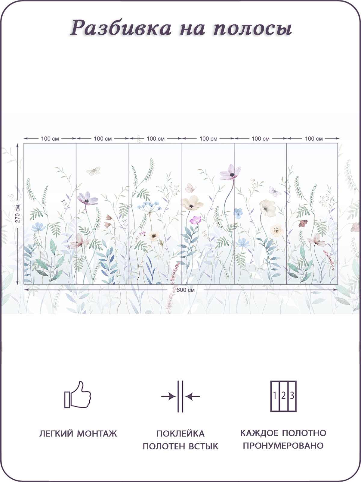 Купить Фотообои на стену флизелиновые 3d Детские Цветы Бабочки 600х270 см Bartonwall K320_C