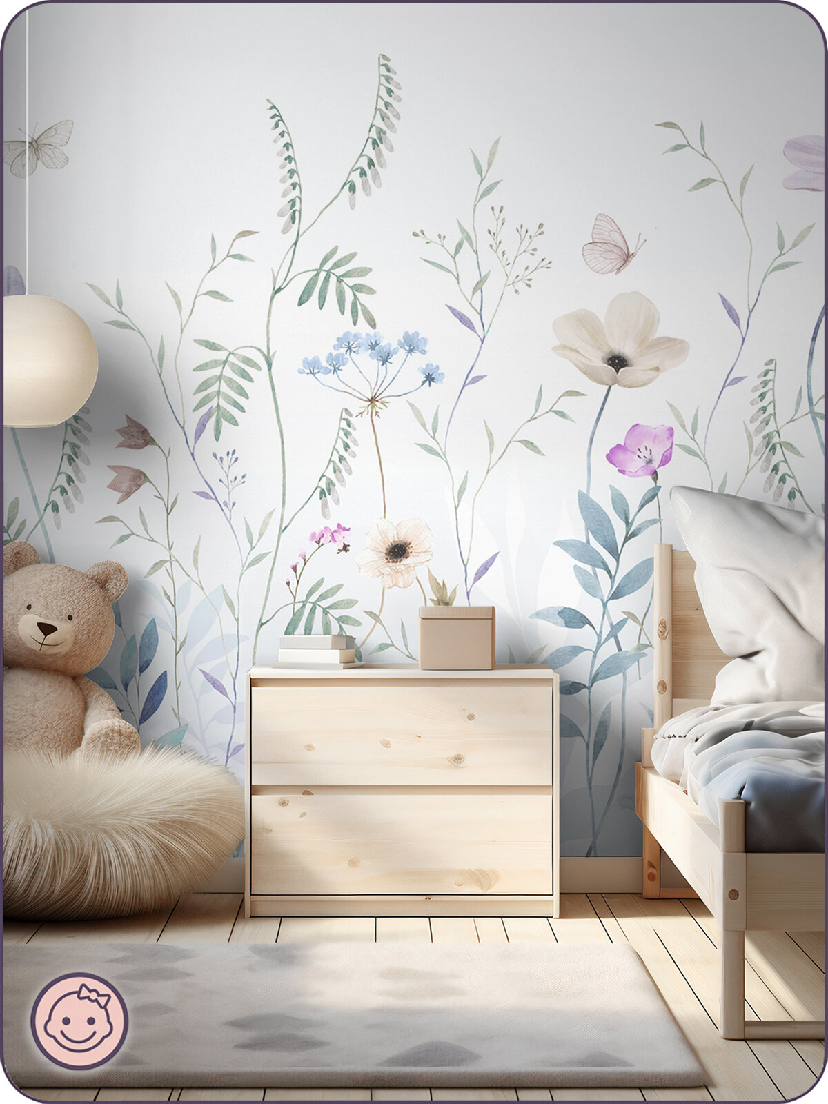 Фотообои на стену флизелиновые 3d Детские Цветы Бабочки 200х270 см Bartonwall K320_C