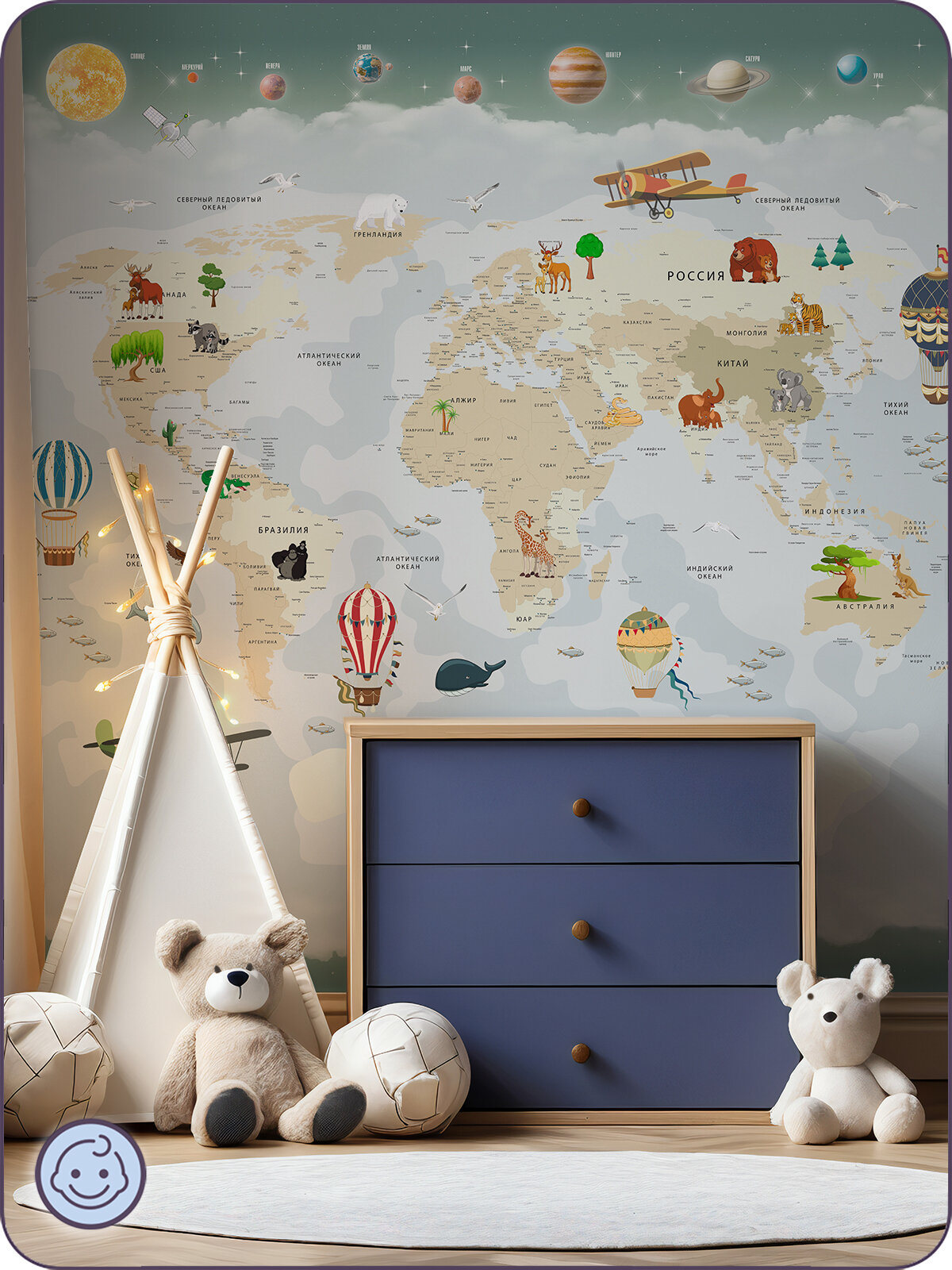СохранитьФотообои на стену флизелиновые 3d Детские Карта Мира 500х270 см Bartonwall K239-Z интересное: