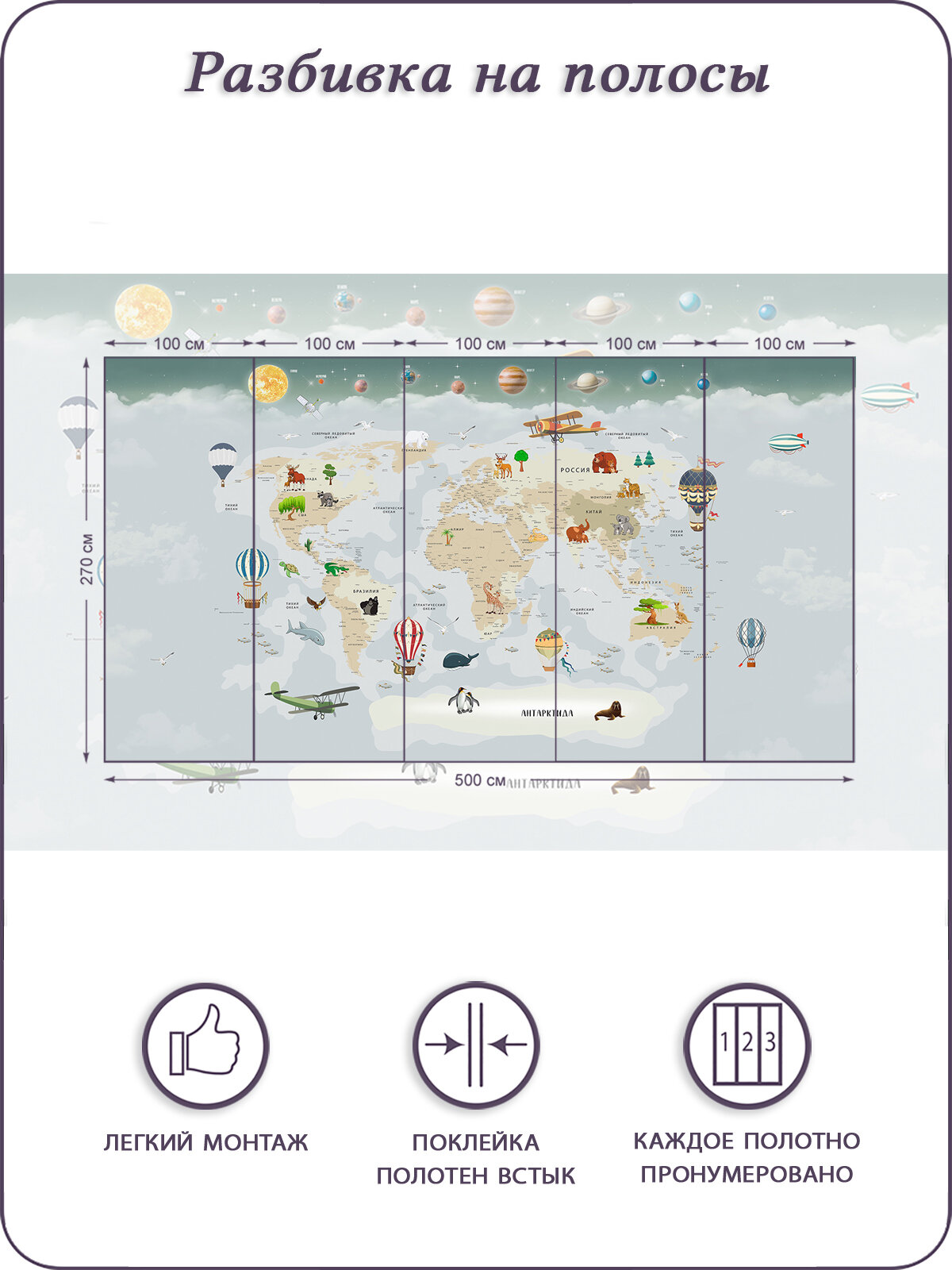 Фотообои на стену флизелиновые 3d Детские Карта Мира 500х270 см Bartonwall K185