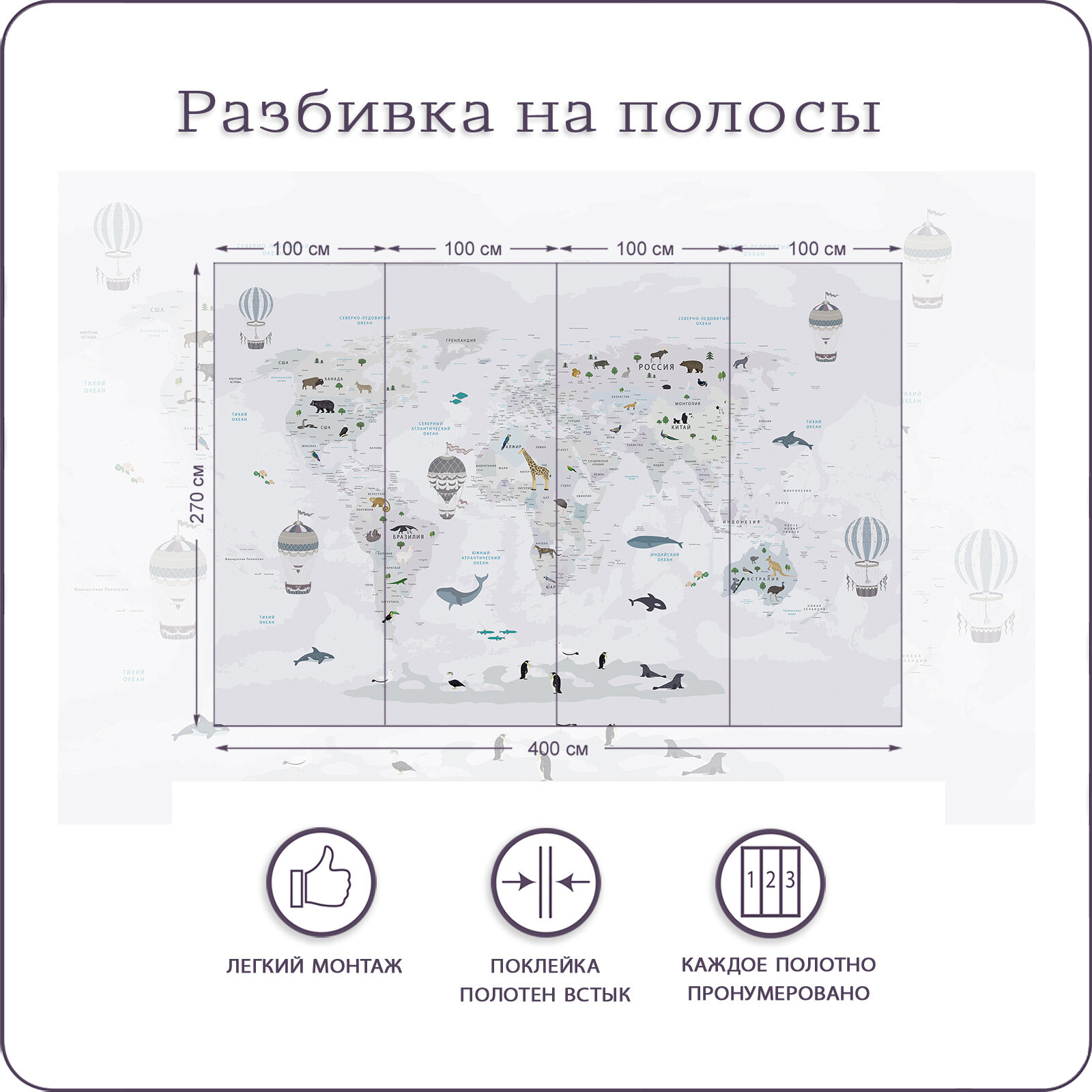 Купить Фотообои на стену флизелиновые 3d Детские Карта Мира 400х270 см Bartonwall K185