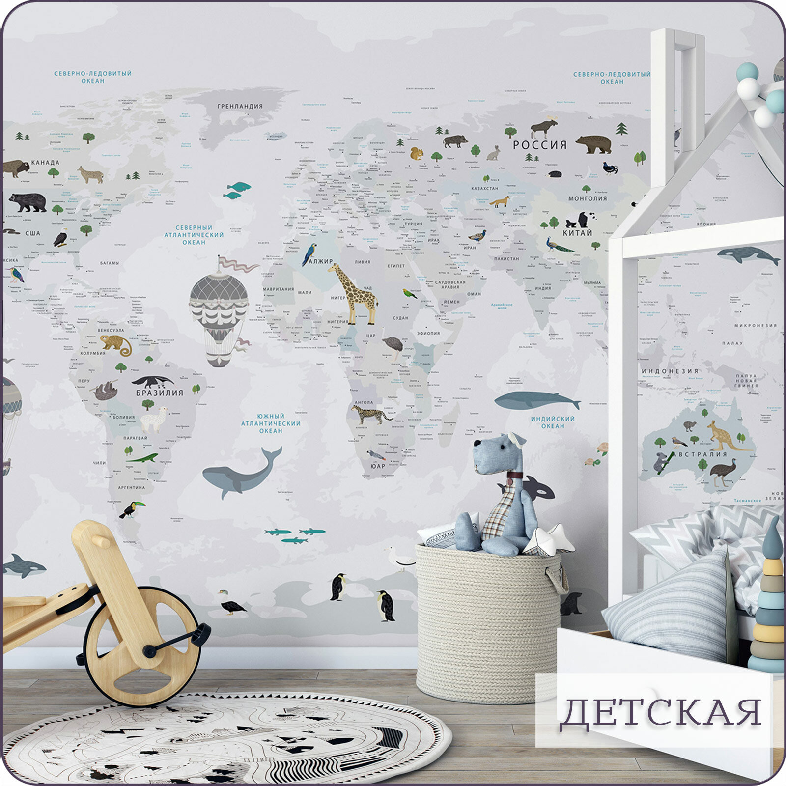СохранитьФотообои на стену флизелиновые 3d Детские Карта Мира 400х270 см Bartonwall K185 интересное: