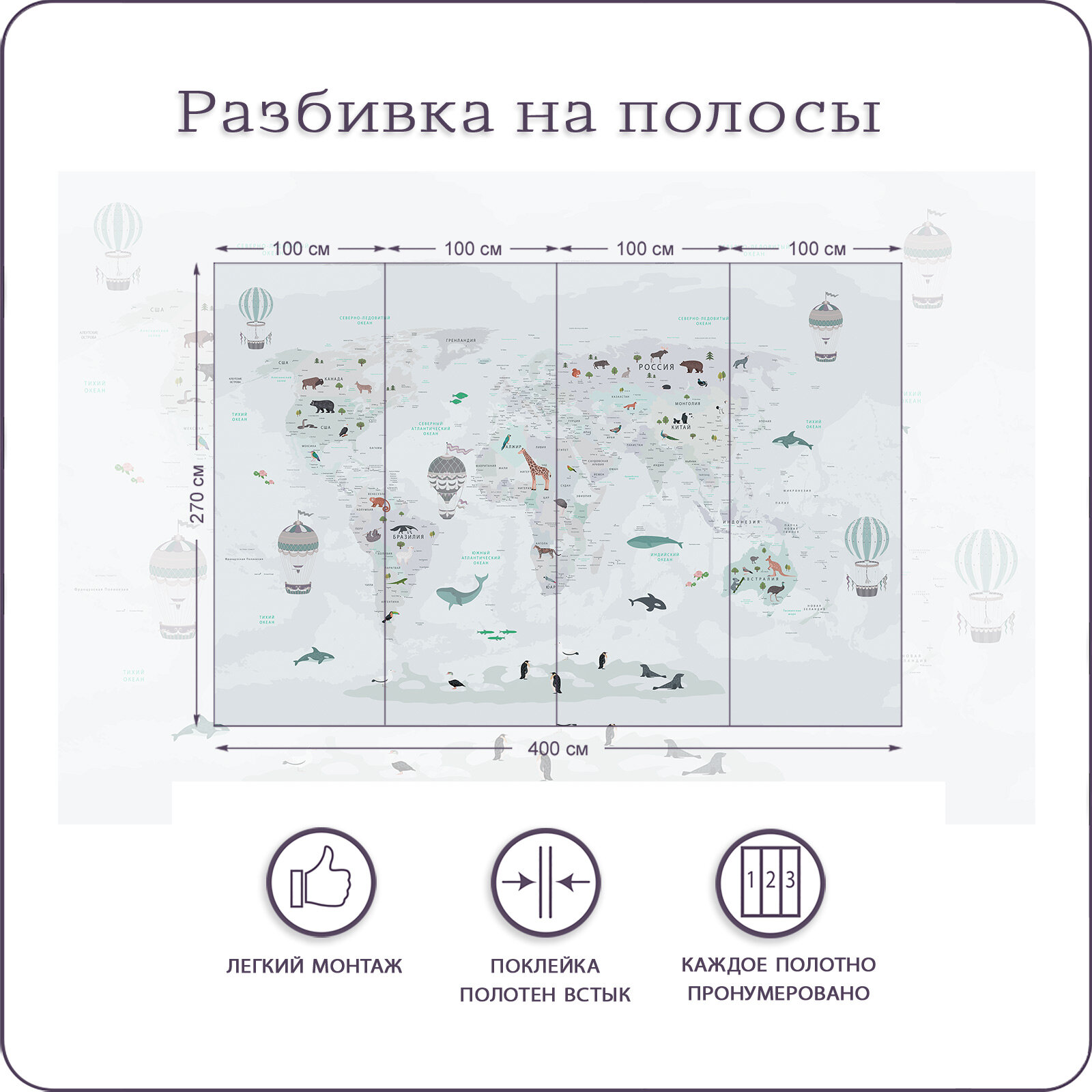 Купить Фотообои на стену флизелиновые 3d Детские Карта Мира 400х270 см Bartonwall K185-C
