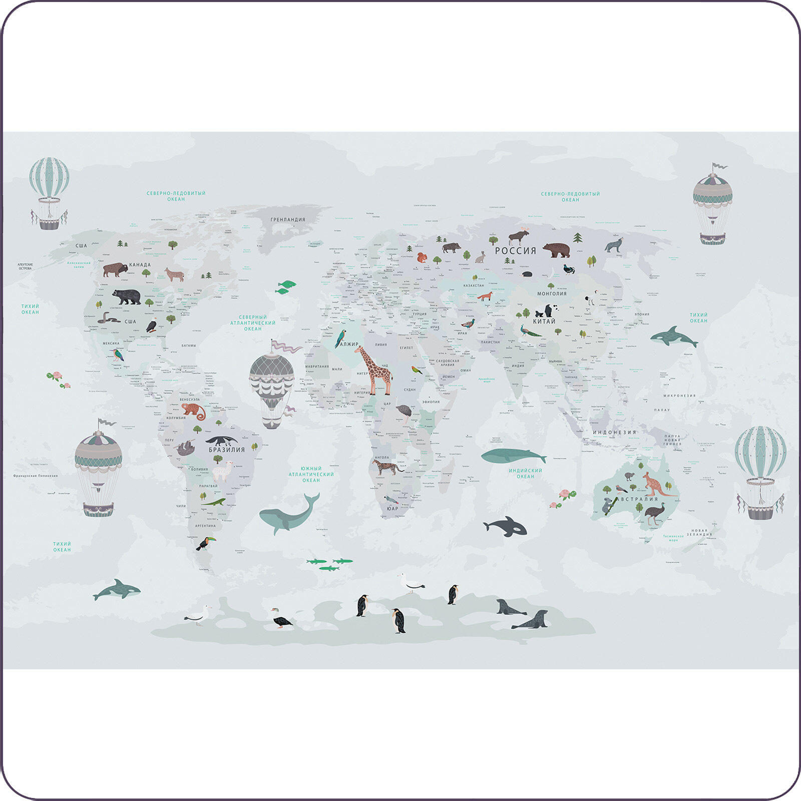 Фотообои бумажные детские Симфония Волшебная карта мира К-179 1.4х2м