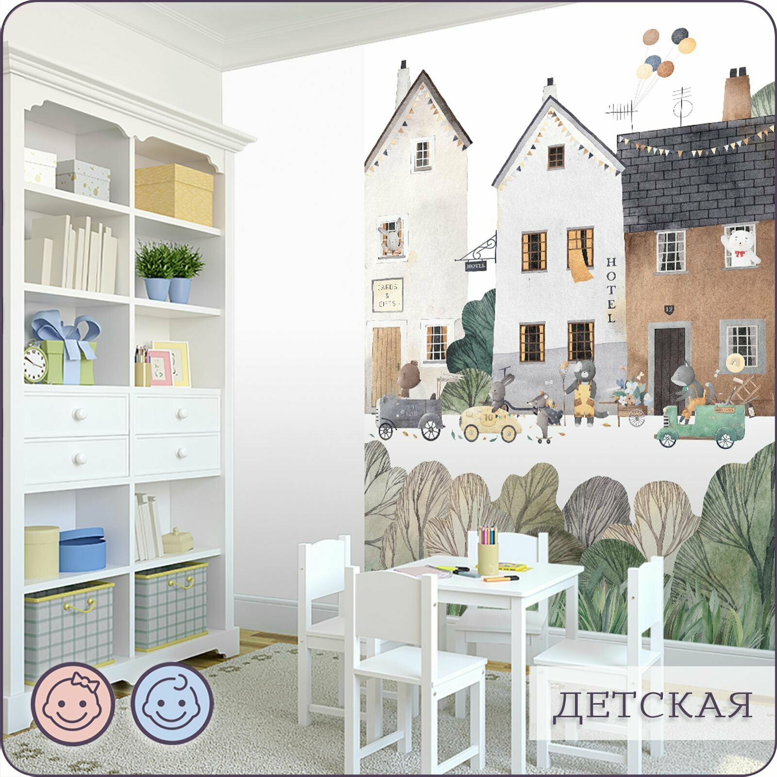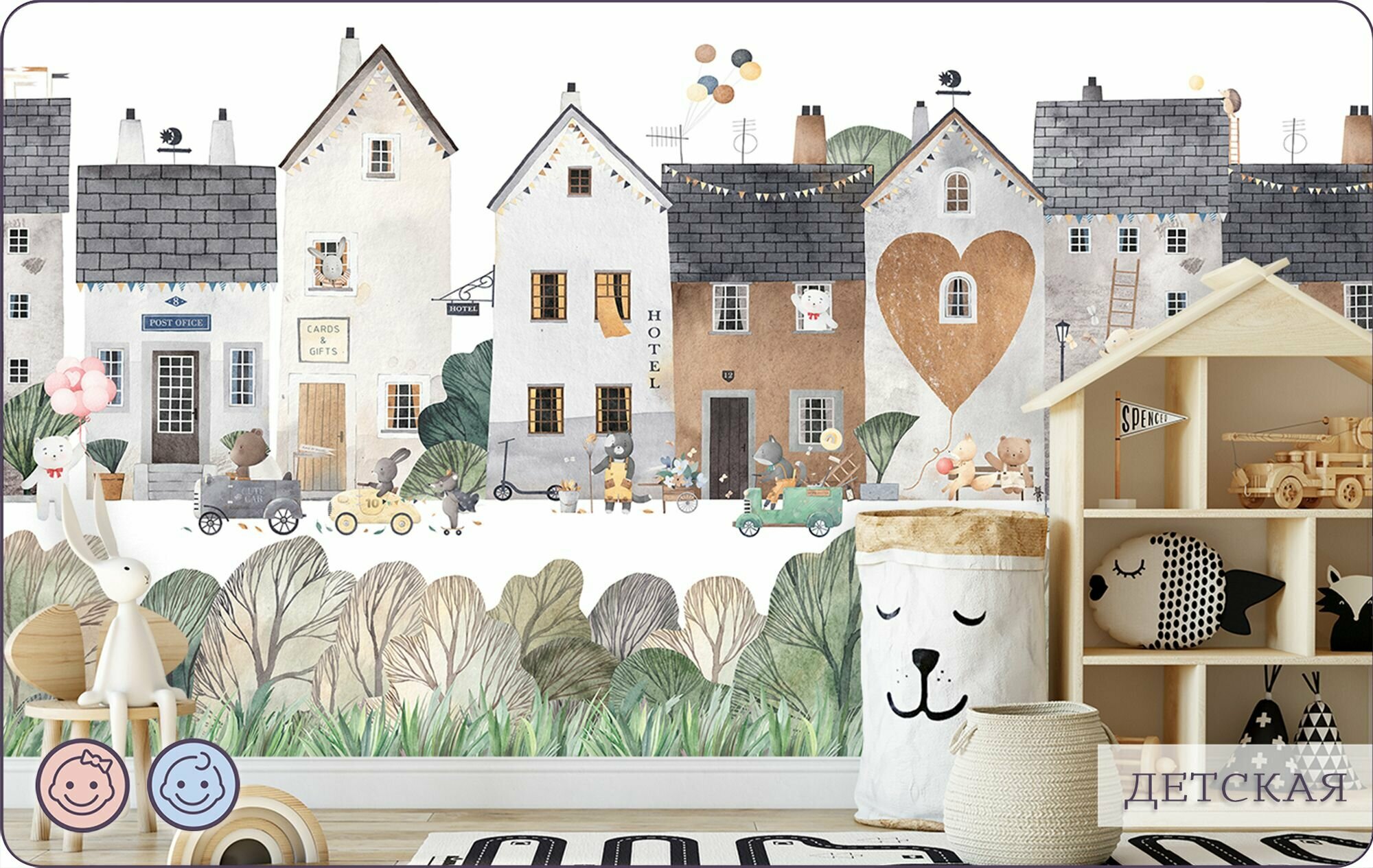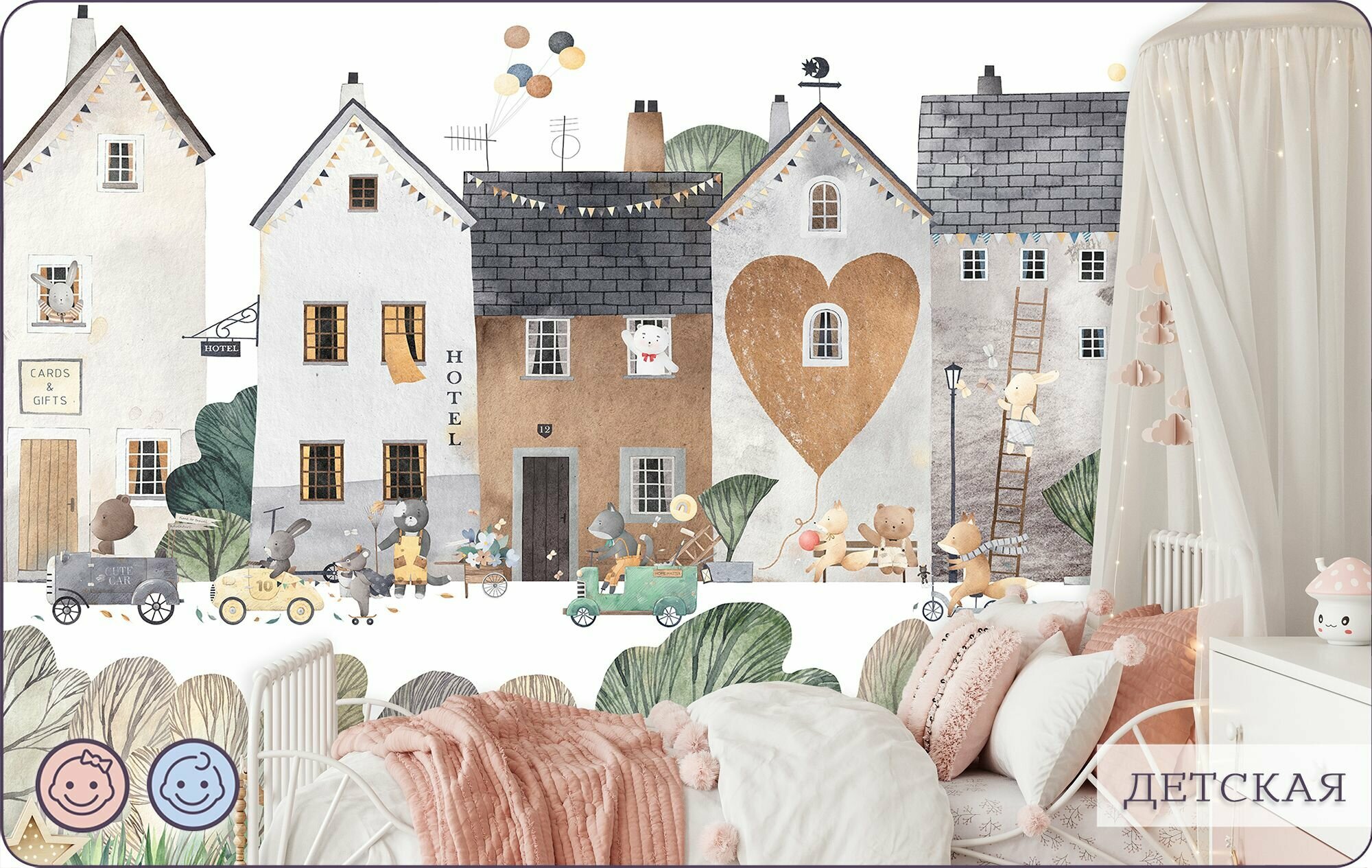 СохранитьФотообои на стену флизелиновые 3d Детские Домики Животные 400х270 см Bartonwall K291 интересное: