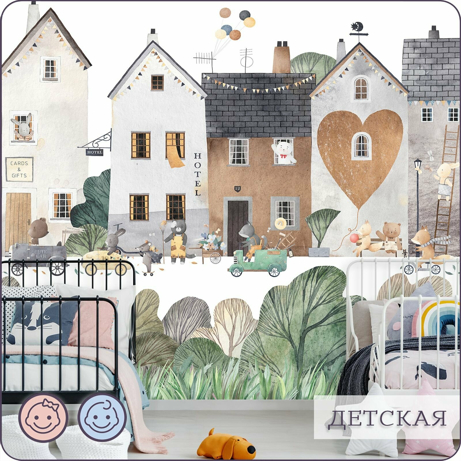 Купить Фотообои на стену флизелиновые 3d Детские Домики Животные 400х270 см Bartonwall K291