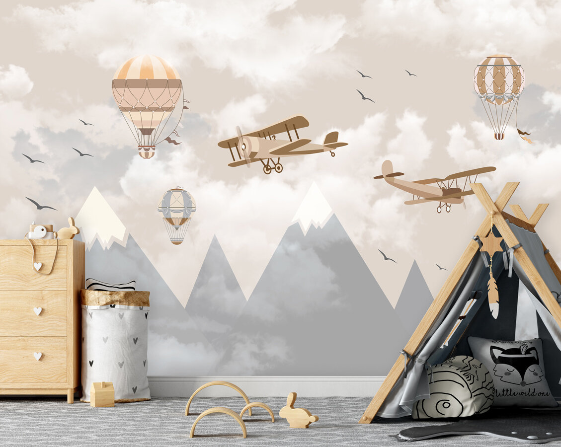 Фотообои на стену флизелиновые 3d Детские Воздушный шар Горы Самолет 200x270 см Bartonwall K068