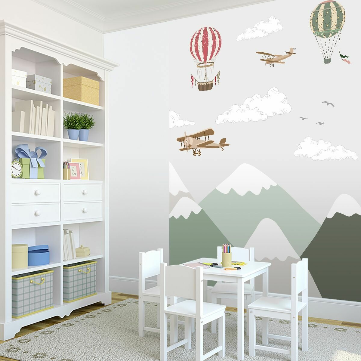 Фотообои на стену флизелиновые 3d Детские Воздушный шар Горы Самолет 200x270 см Bartonwall K068