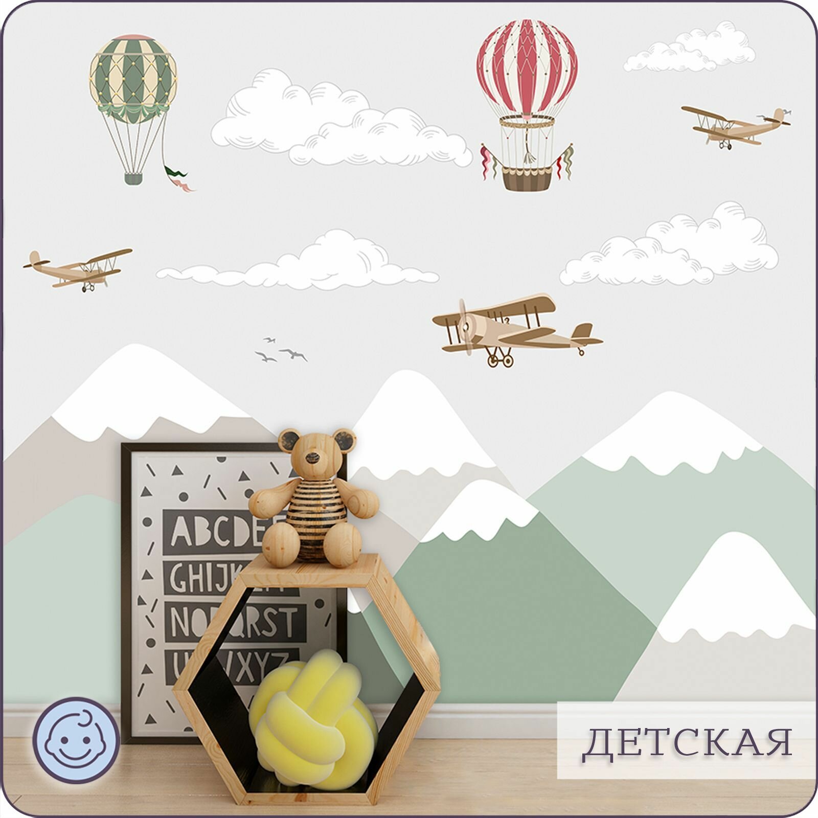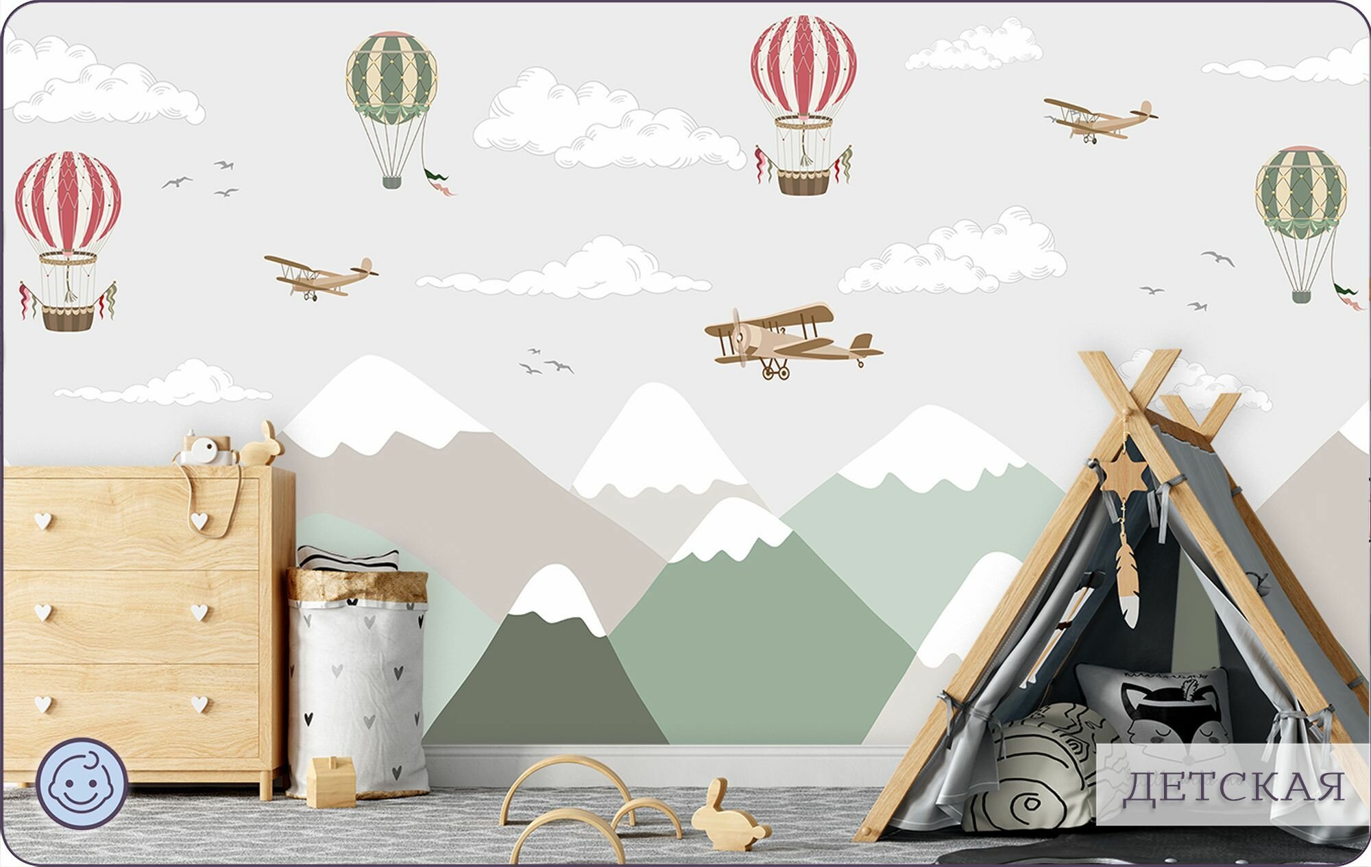 СохранитьФотообои на стену флизелиновые 3d Детские Воздушный шар Горы Самолет 200х270 см Bartonwall K068-Z интересное:
