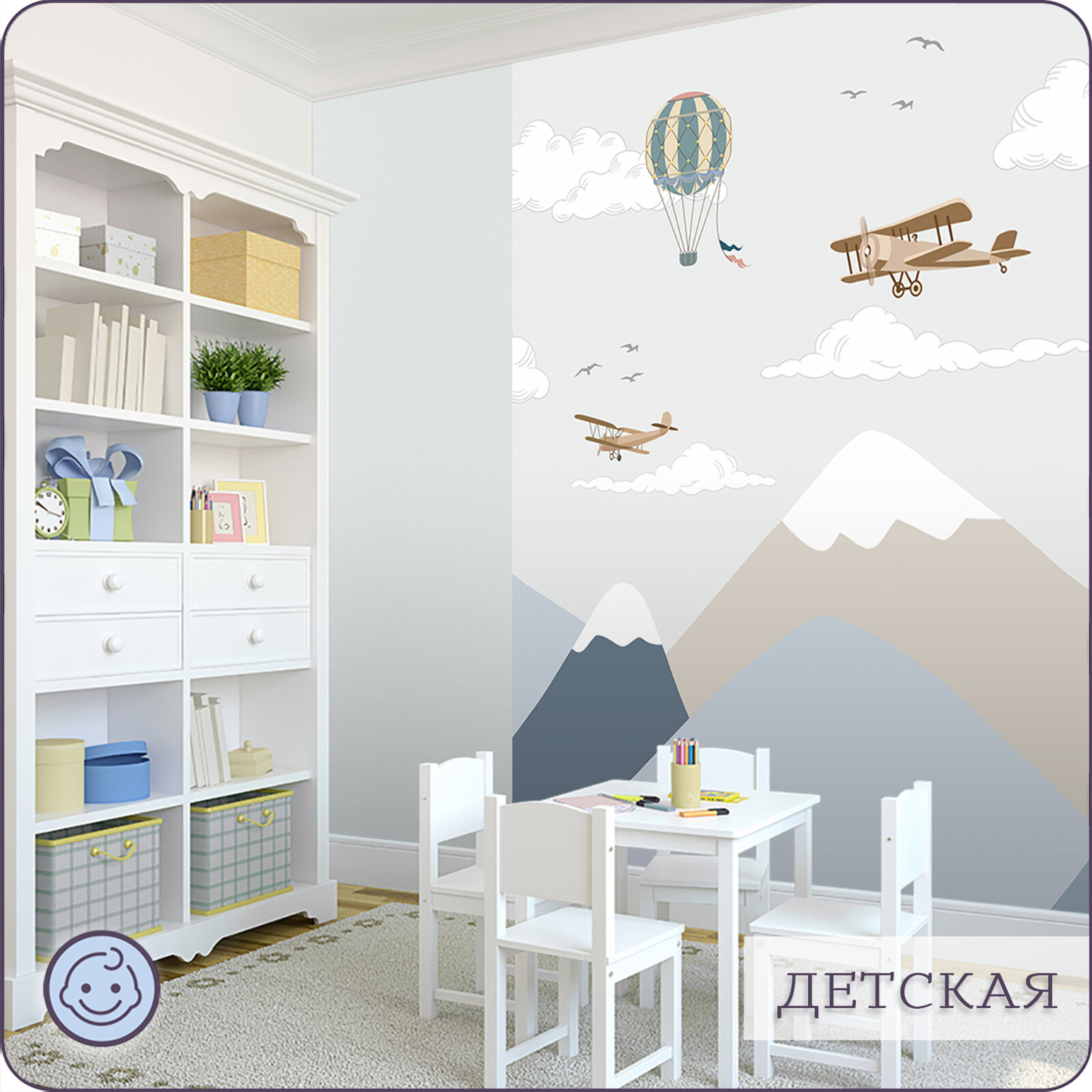 СохранитьФотообои на стену флизелиновые 3d Детские Воздушный шар Горы Самолет 600x270 см Bartonwall K068 интересное: