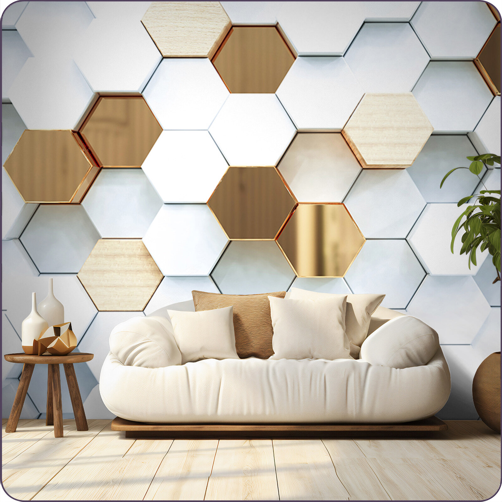 Фотообои на стену флизелиновые 3d Геометрия Абстракция Соты 300х270 см Bartonwall M065-G