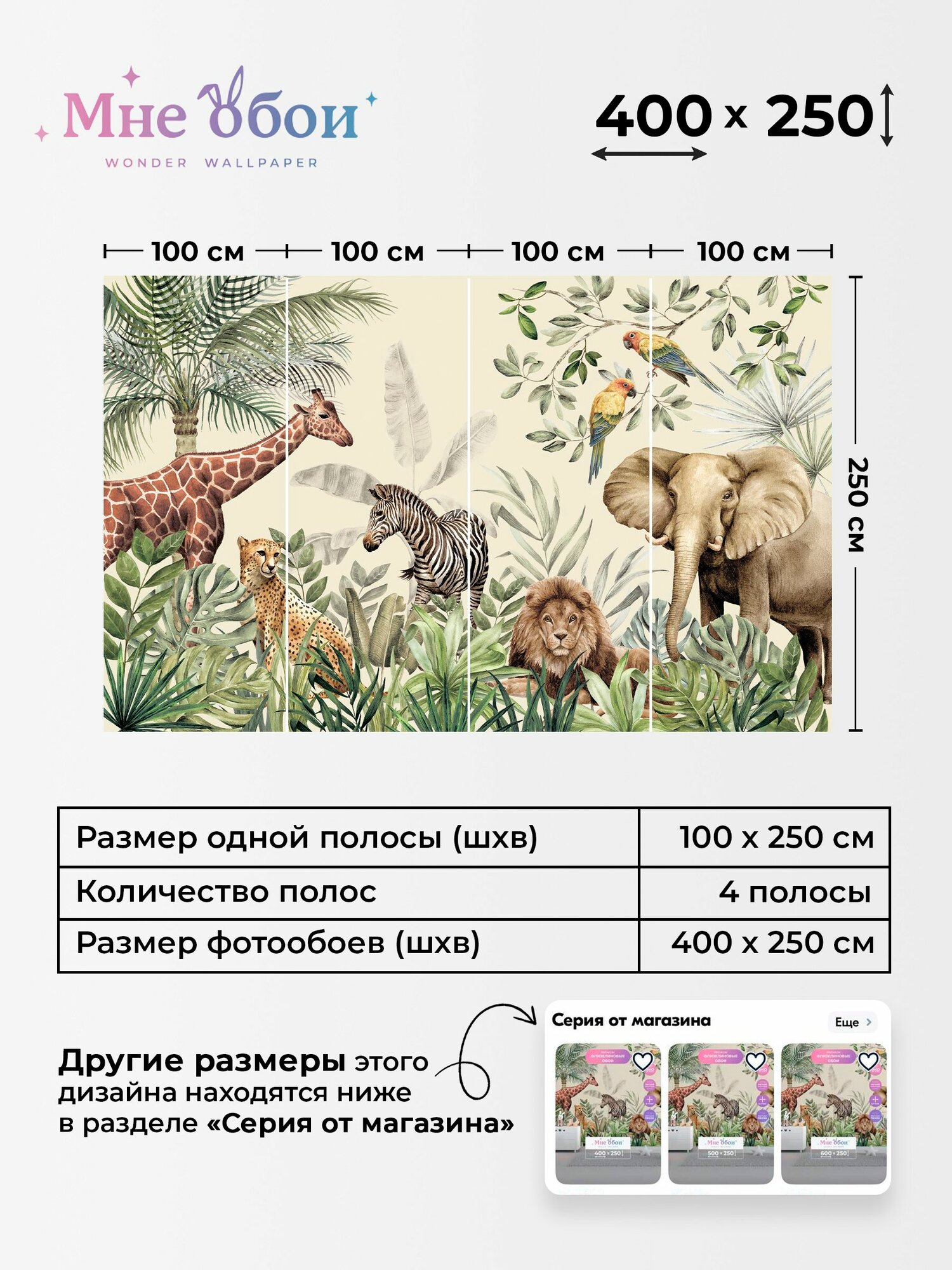 Ниже Вы можете прочитать отзывы на Фреска флизелиновая - детские 3D фотообои на стену "Wild Safari" 400х250 (ШхВ), Сафари, Животные, 3д обои в детскую, ознакомится с подробными характеристиками, посмотреть интересные обзоры и фотографии на Фреска флизелиновая - детские 3D фотообои на стену "Wild Safari" 400х250 (ШхВ), Сафари, Животные, 3д обои в детскую.