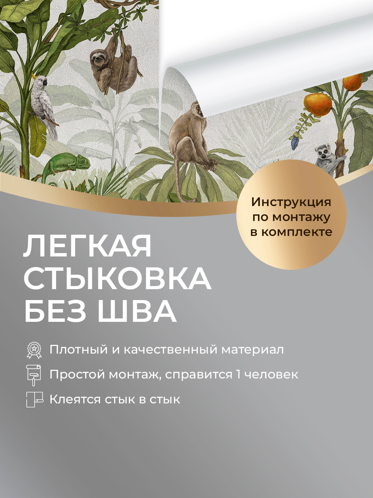 Фреска флизелиновая - детские 3D фотообои на стену "Джунгли" 270х270 (ШхВ), Животные, 3д обои в детскую