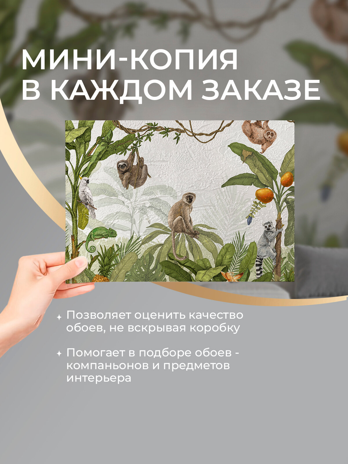 Фреска флизелиновая - детские 3D фотообои на стену "Джунгли" 300х300 (ШхВ), Животные, 3д обои в детскую