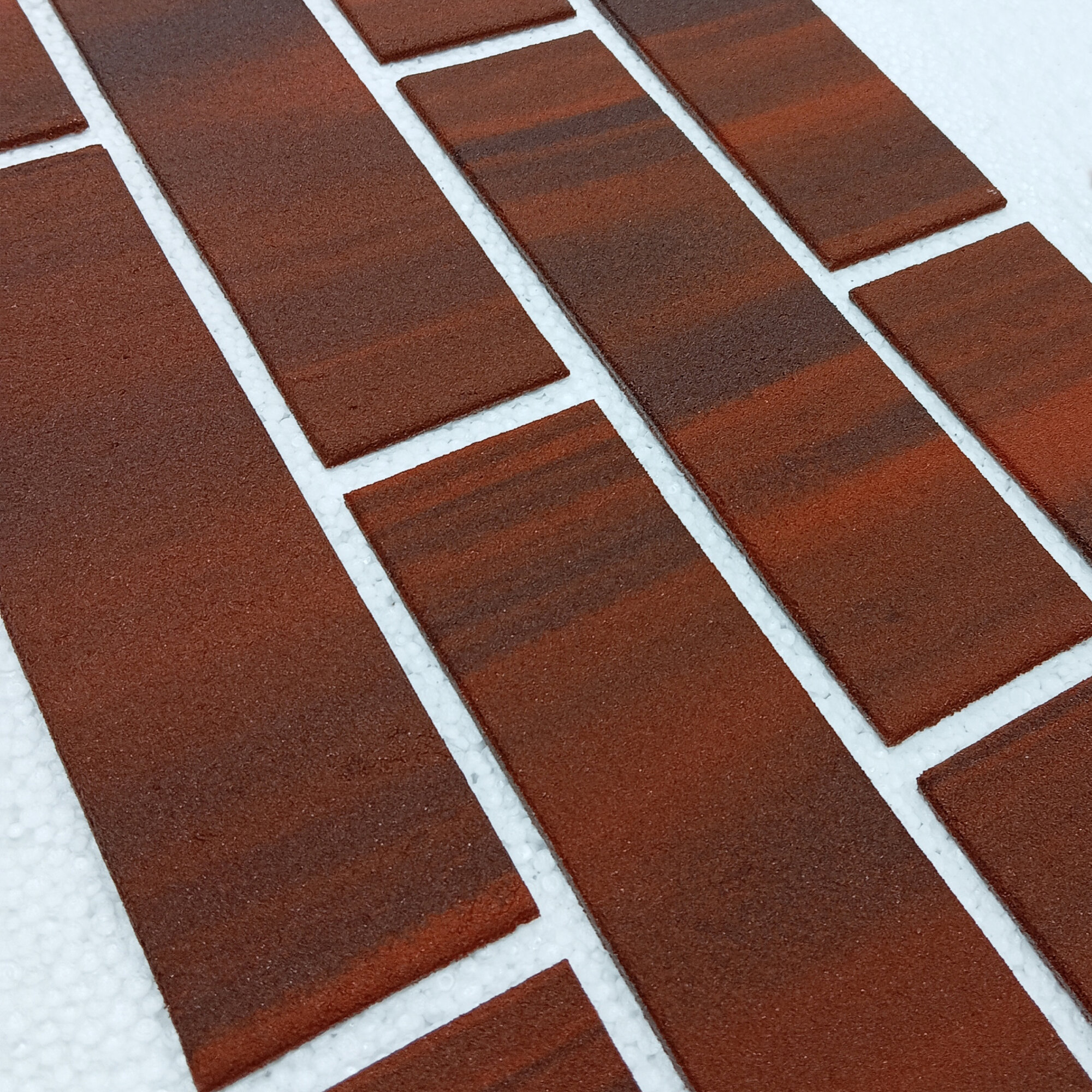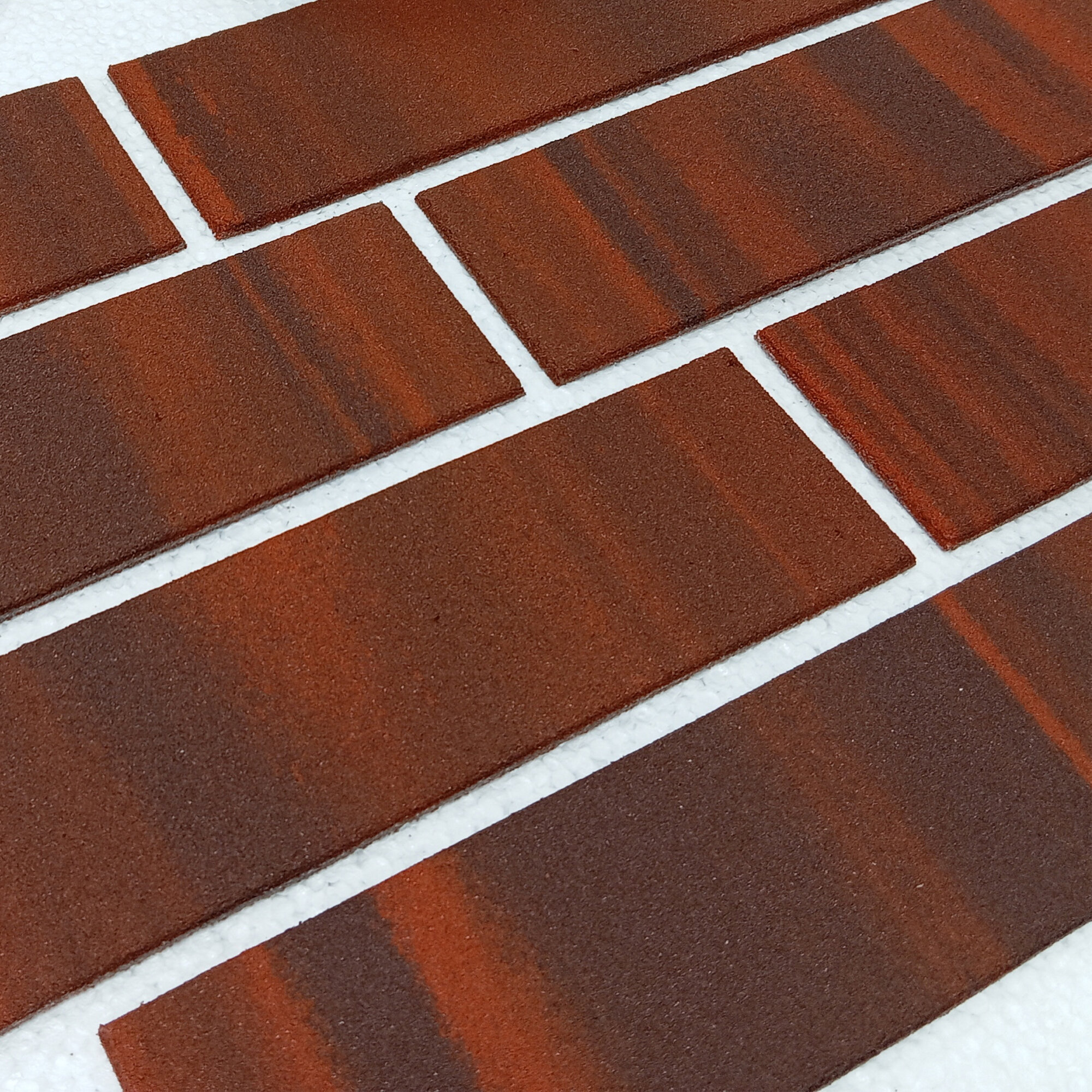 Гибкий кирпич с защитной плёнкой, штучный, тёмно-красного цвета.