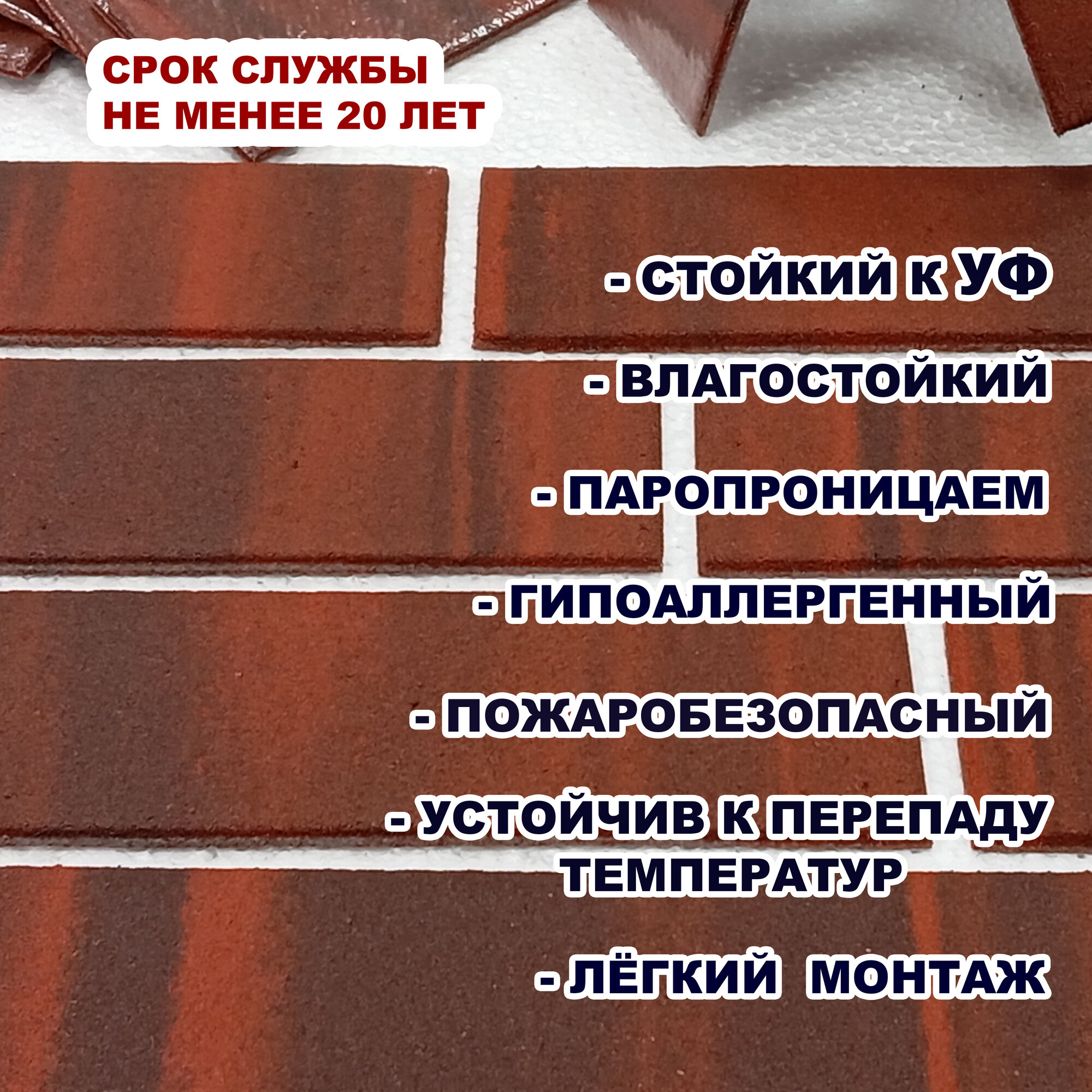 Гибкий облицовочный кирпич "Штучный", красный, 24 см х 6,5 см