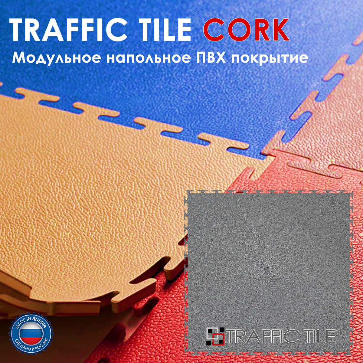 Плитка ПВХ модульная для пола промышленная Traffic Tile Cork 500x500x5 мм, серая интересное: