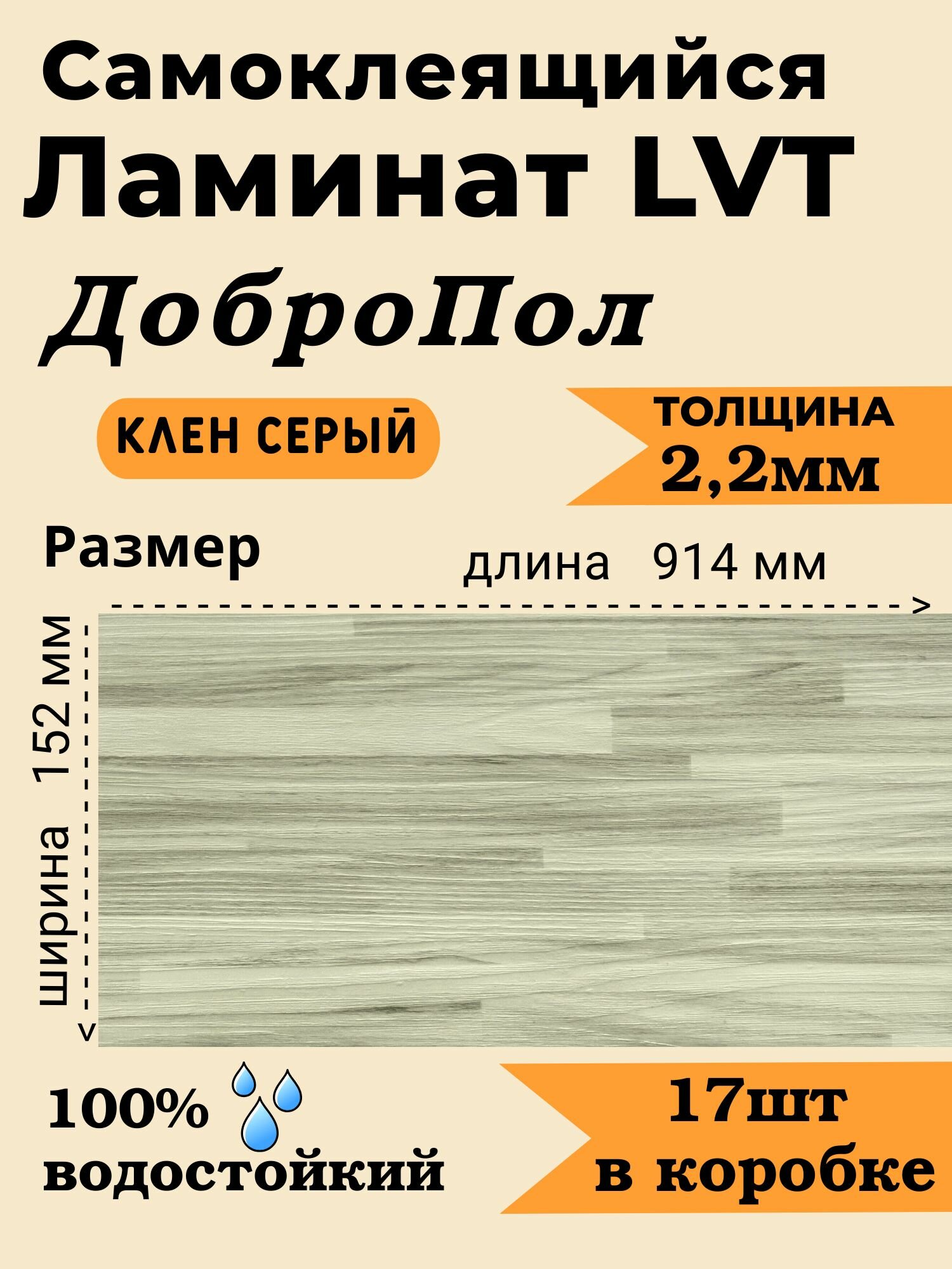 Купить Ламинат LVT самоклеящийся ДобрoПол 914х152х2,2мм 17шт 32 класс FD806-2 Клен серый