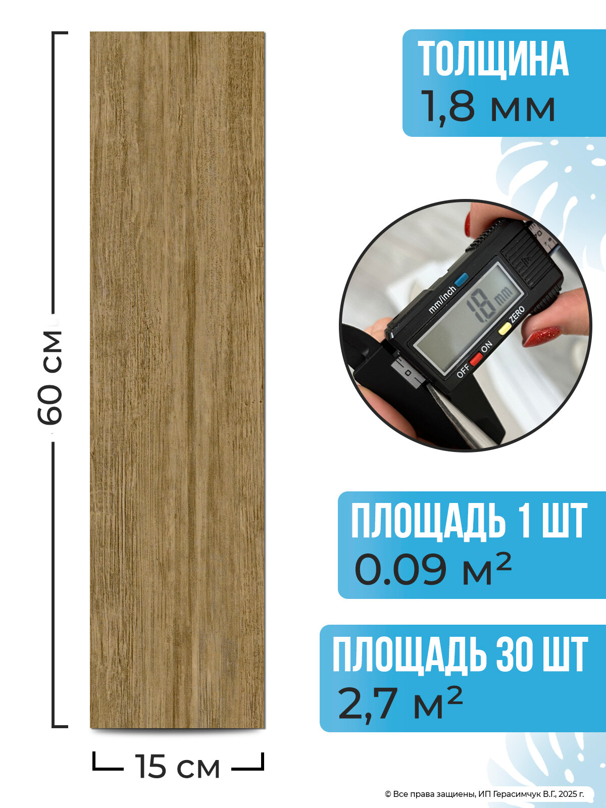 Сохранить"Дуб Эванс" Ламинат для пола самоклеящийся 60х15 см. Виниловый пол на кухню. Плитка для ванной и в коридор. 30 шт. интересное: