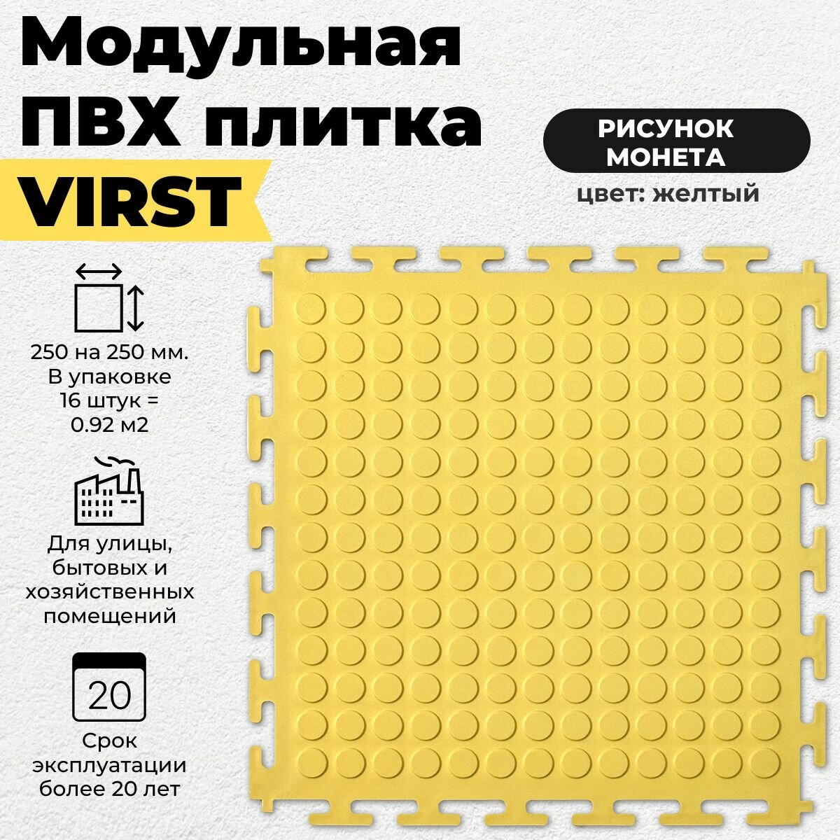 Купить Плитка ПВХ модульная напольная, желтая, рисунок монета, 250 х 250