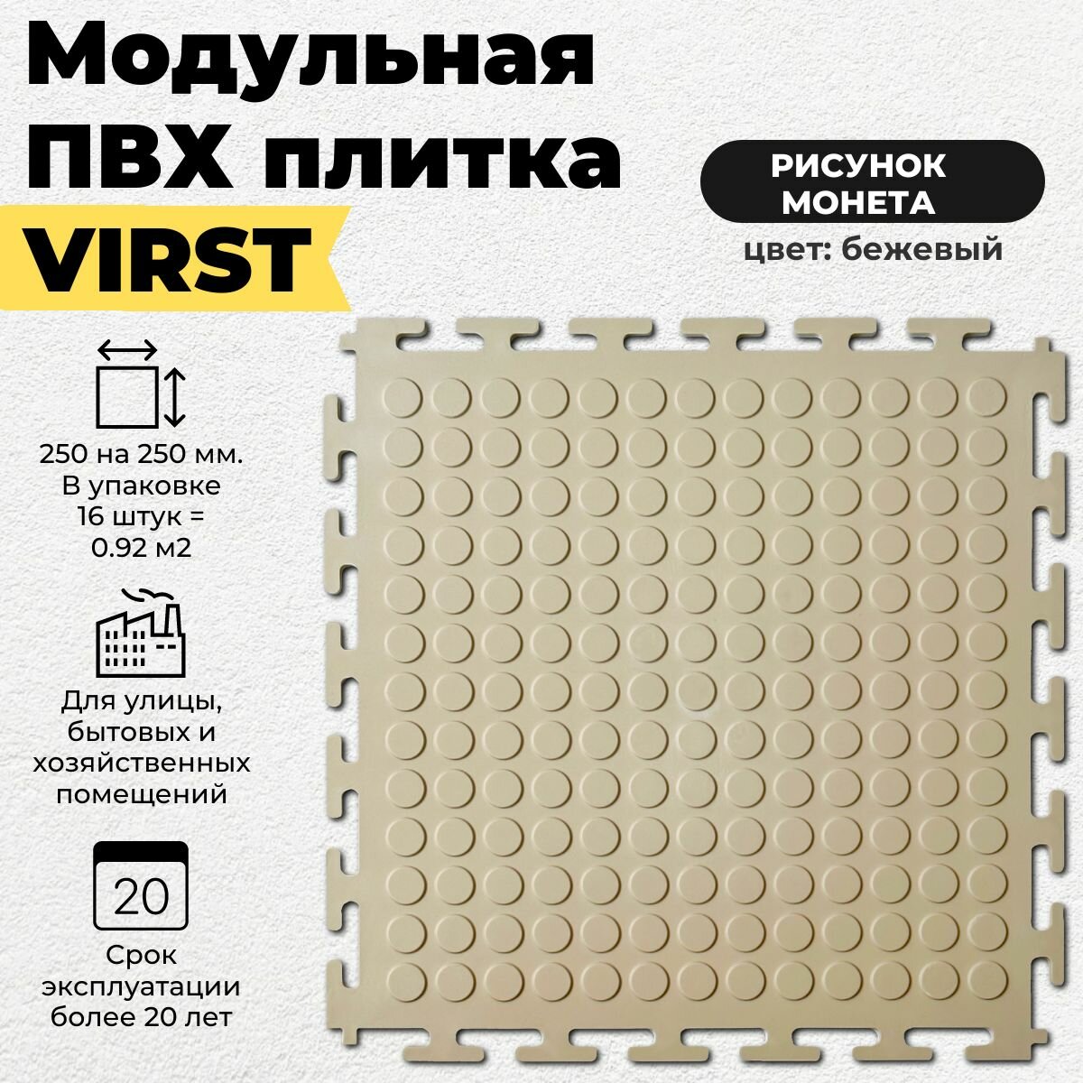 СохранитьПлитка ПВХ модульная напольная, бежевая, рисунок монета, 250х250 интересное: