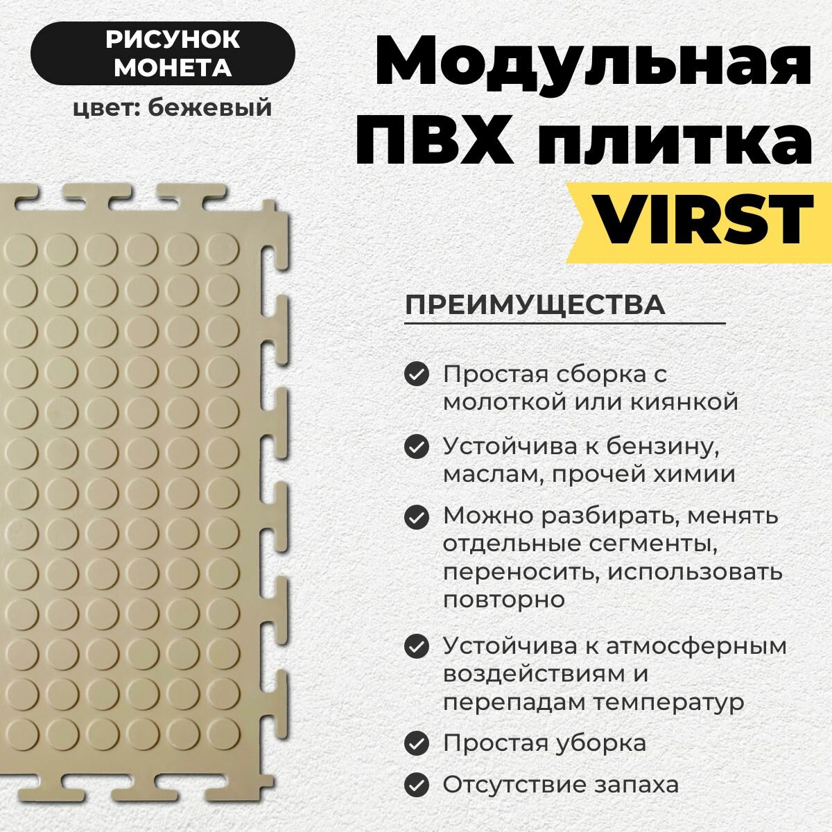 Ниже Вы можете прочитать отзывы на Плитка ПВХ модульная напольная, бежевая, рисунок монета, 250х250, ознакомится с подробными характеристиками, посмотреть интересные обзоры и фотографии на Плитка ПВХ модульная напольная, бежевая, рисунок монета, 250х250.