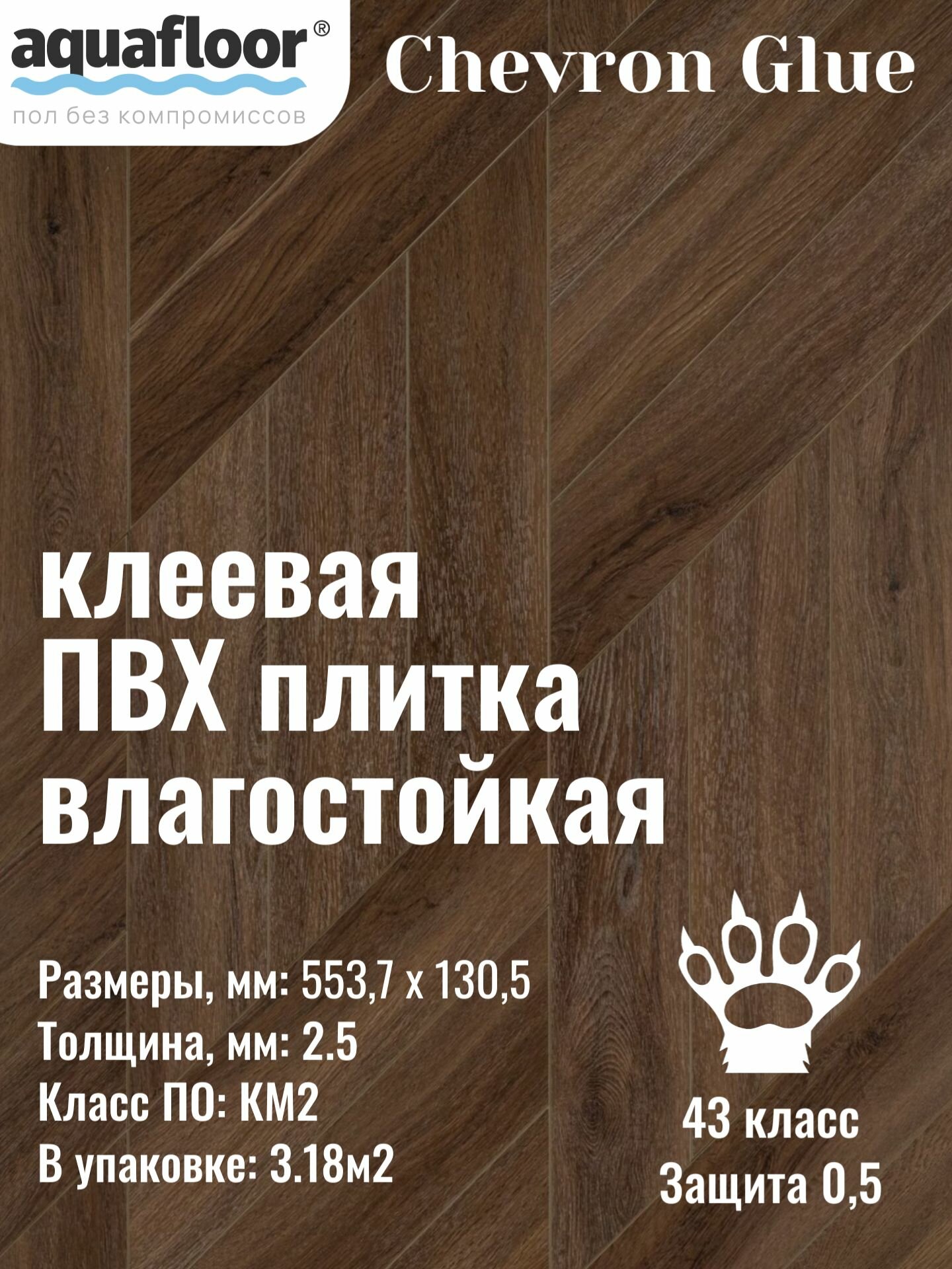 Кварцвинил, виниловая ПВХ плитка влагостойкая LVT клеевая AQUAFLOOR Chevron Glue AF2558PGCh (553,7x130,5x2,5 мм) Упаковка (3.18м), под паркет французская елочка