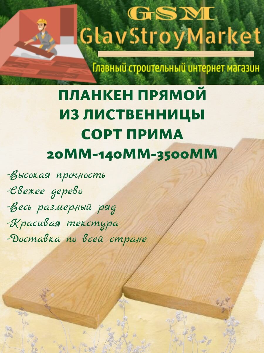 Планкен прямой из лиственницы сорт прима 20х140х3500мм 3шт