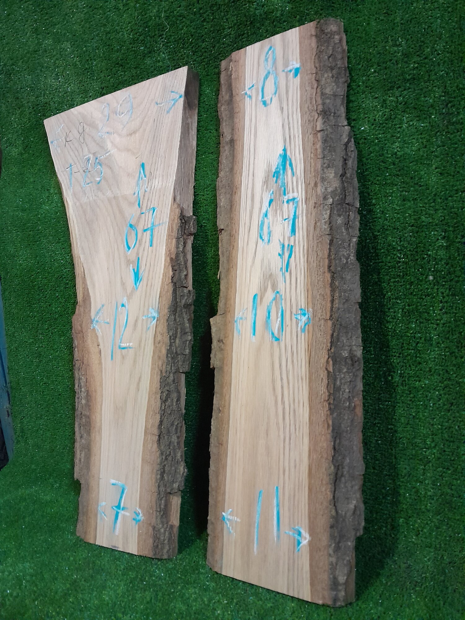 Купить Два слэба дерева красный дуб. 1 сорт. Отстроганы и откалиброваны. Размеры: 67*29-12-7*2,5 см и 67*8-10-11*2,5 см.
