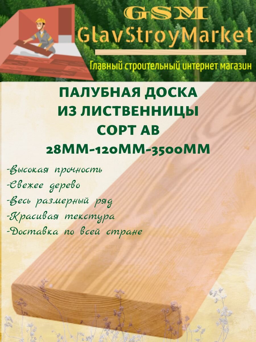 Палубная доска из лиственницы сорт АВ 28х120х3500мм 1шт интересное:
