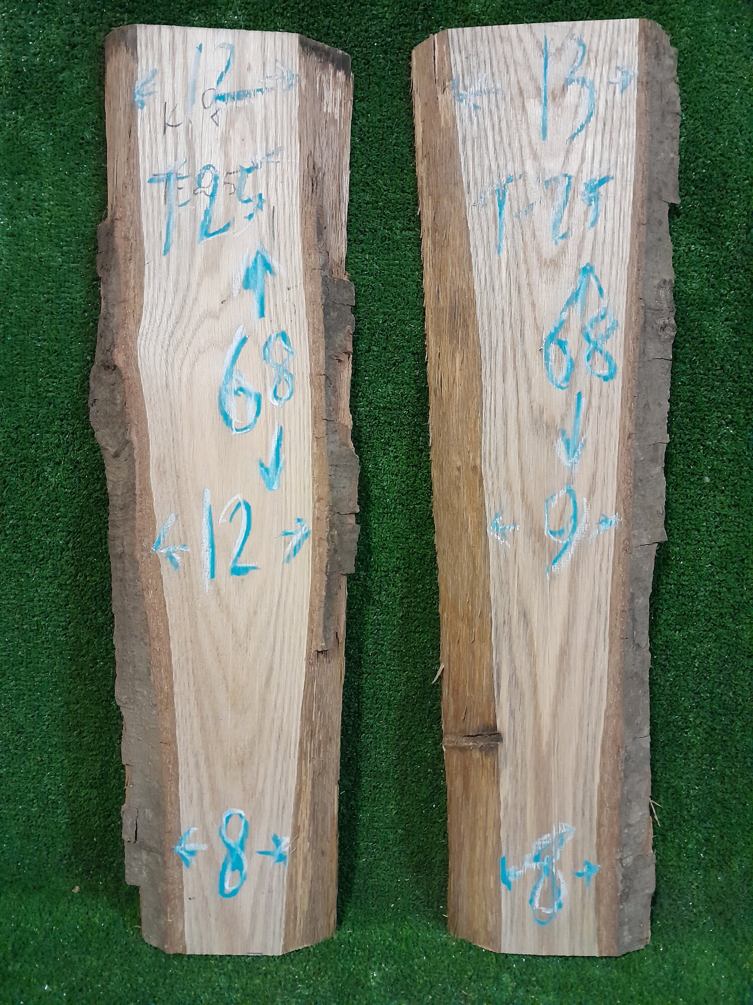 Купить Два слэба дерева красный дуб. 1 сорт. Отстроганы и откалиброваны. Размеры: 68*13-12-8*2,5 см и 68*8-9-12*2,5 см.
