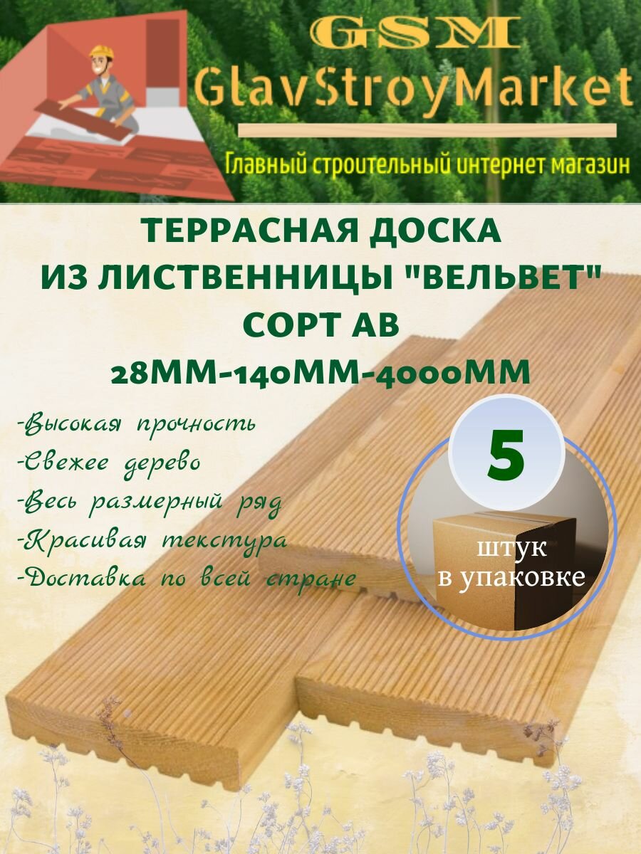 Террасная доска из лиственницы "Вельвет" сорт АВ 28х140х4000мм 5шт интересное: