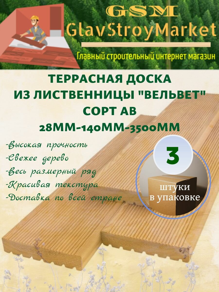 Террасная доска из лиственницы "Вельвет" сорт АВ 28х140х3500мм 3шт интересное: