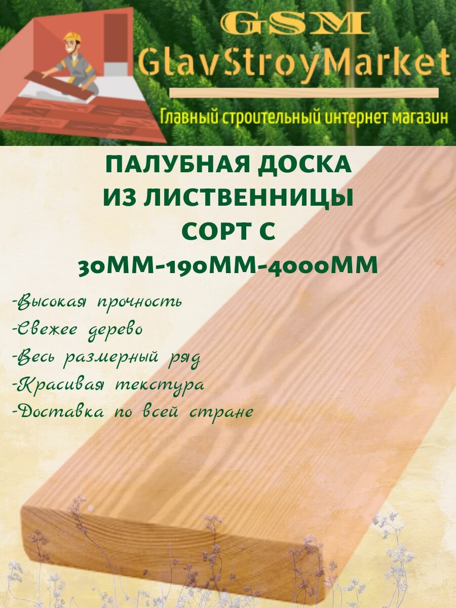 Палубная доска из лиственницы сорт С 30х190х4000мм 1шт интересное: