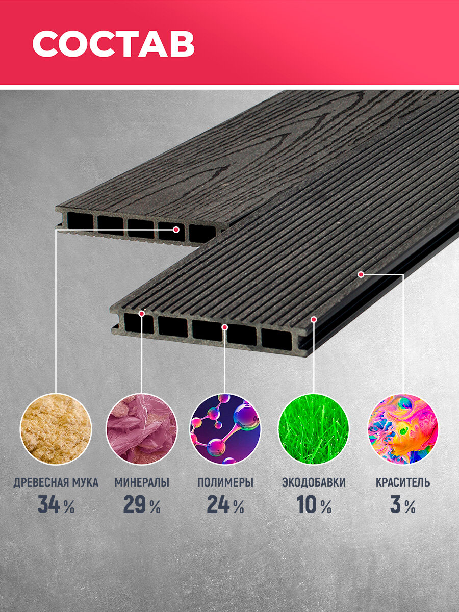 СохранитьТеррасная доска ДПК Diasdeck 160х25мм 6 метров антрацит (минерал) интересное: