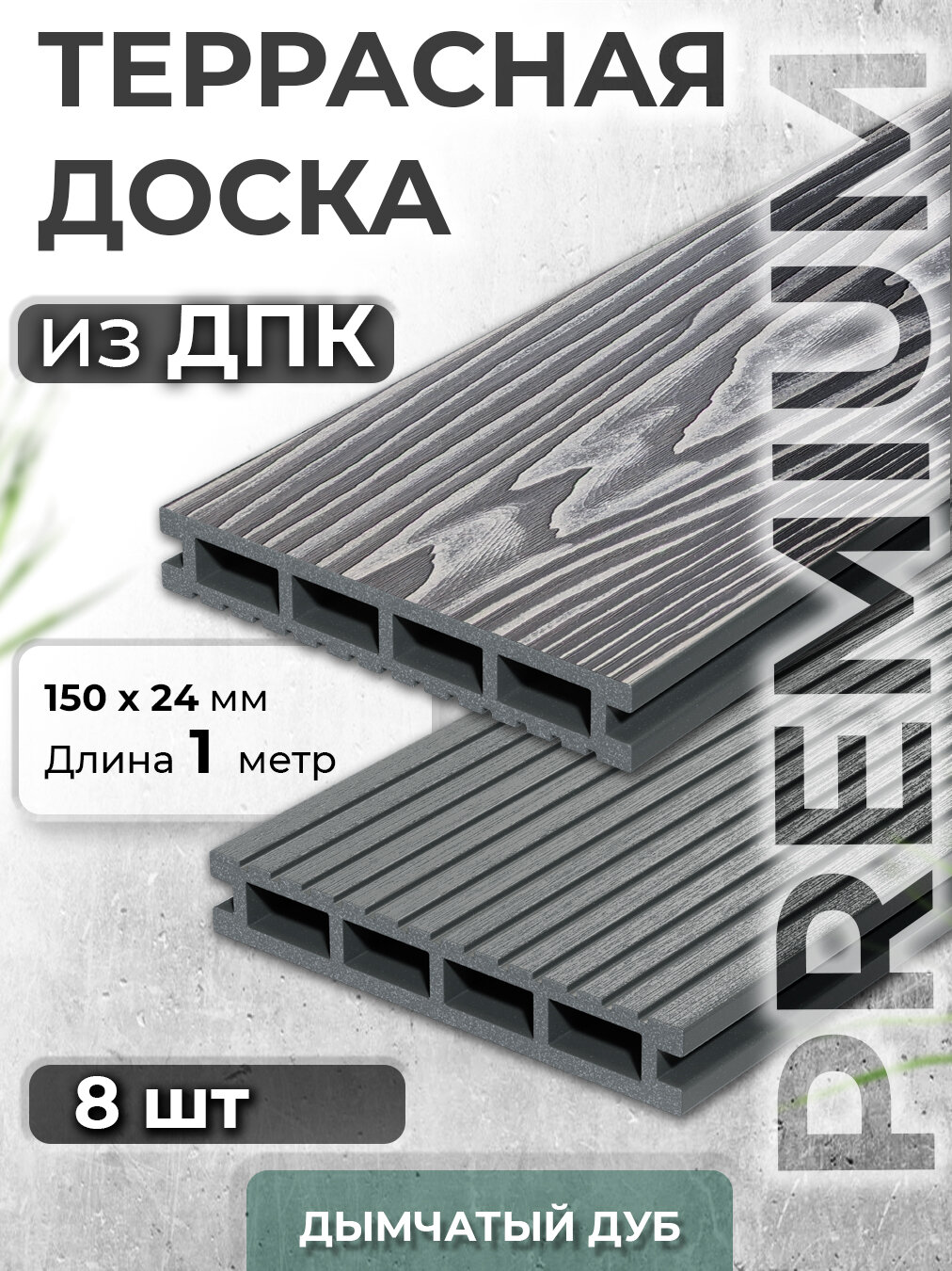 СохранитьТеррасная доска из ДПК Docke, Decking Urban PREMIUM, 150х24х1000 0,15м2 серый (Дымчатый Дуб), 8 шт интересное: