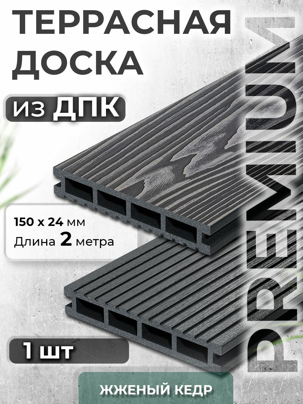 Террасная доска из ДПК Docke, Decking Urban PREMIUM, 150х24х2000 0,30м2 графит (Жженый Кедр), 12 шт