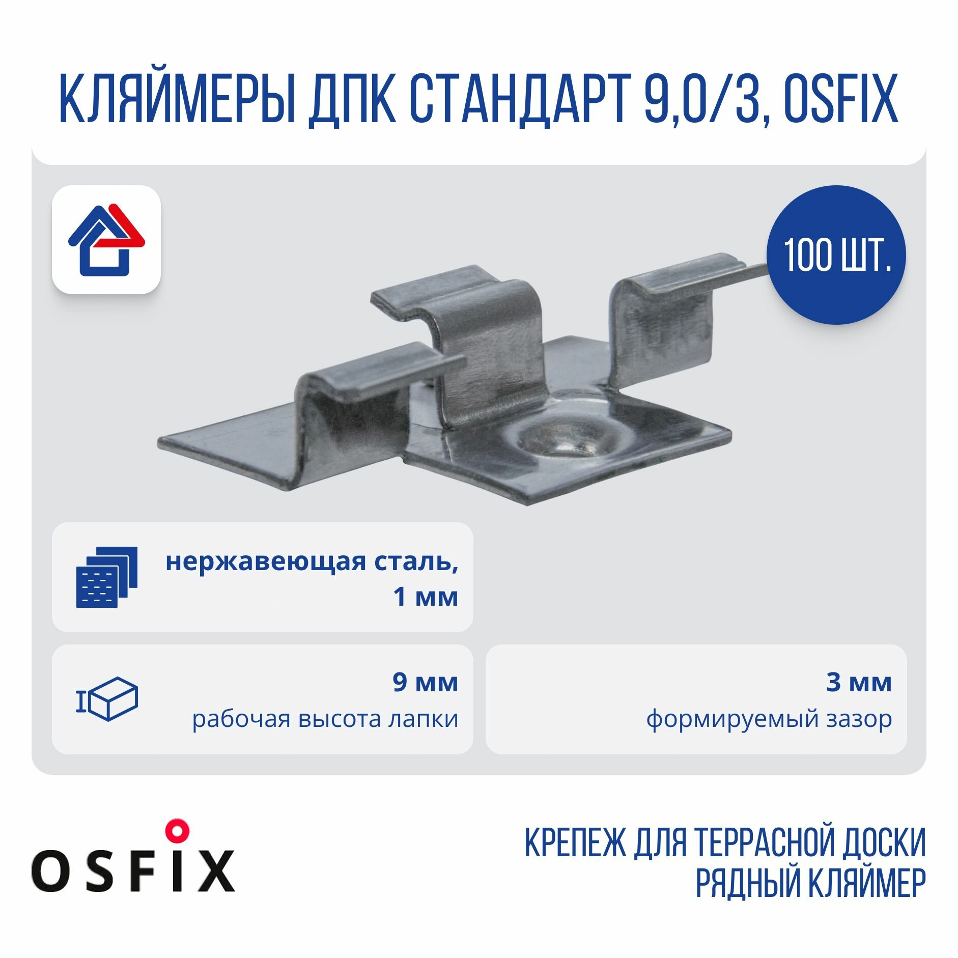 Упаковка кляймеров для ДПК Стандарт 9,0/3 (AISI430, 1мм) 100шт/упак OSFIX, серый интересное:
