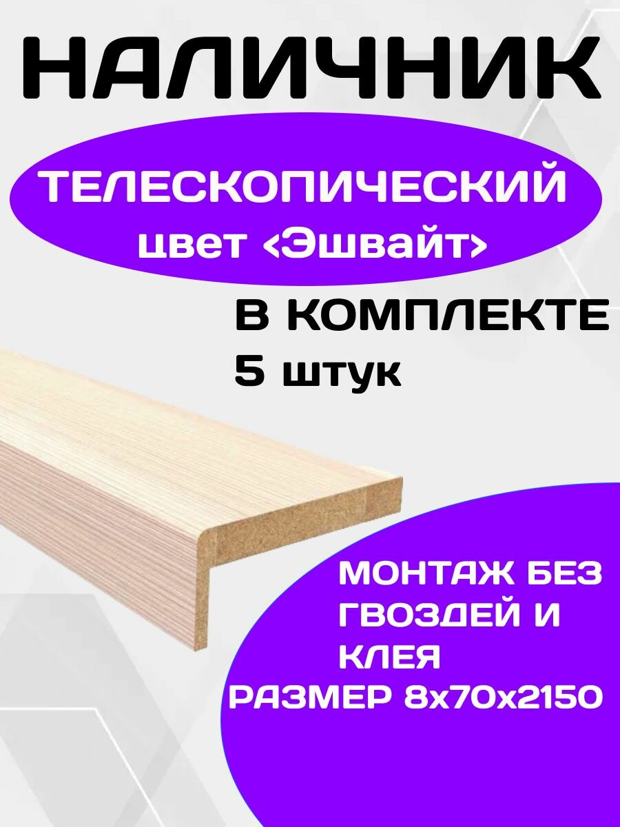 Купить Наличники телескопические, для межкомнатных дверей, цвет эшвайт, 5 шт.