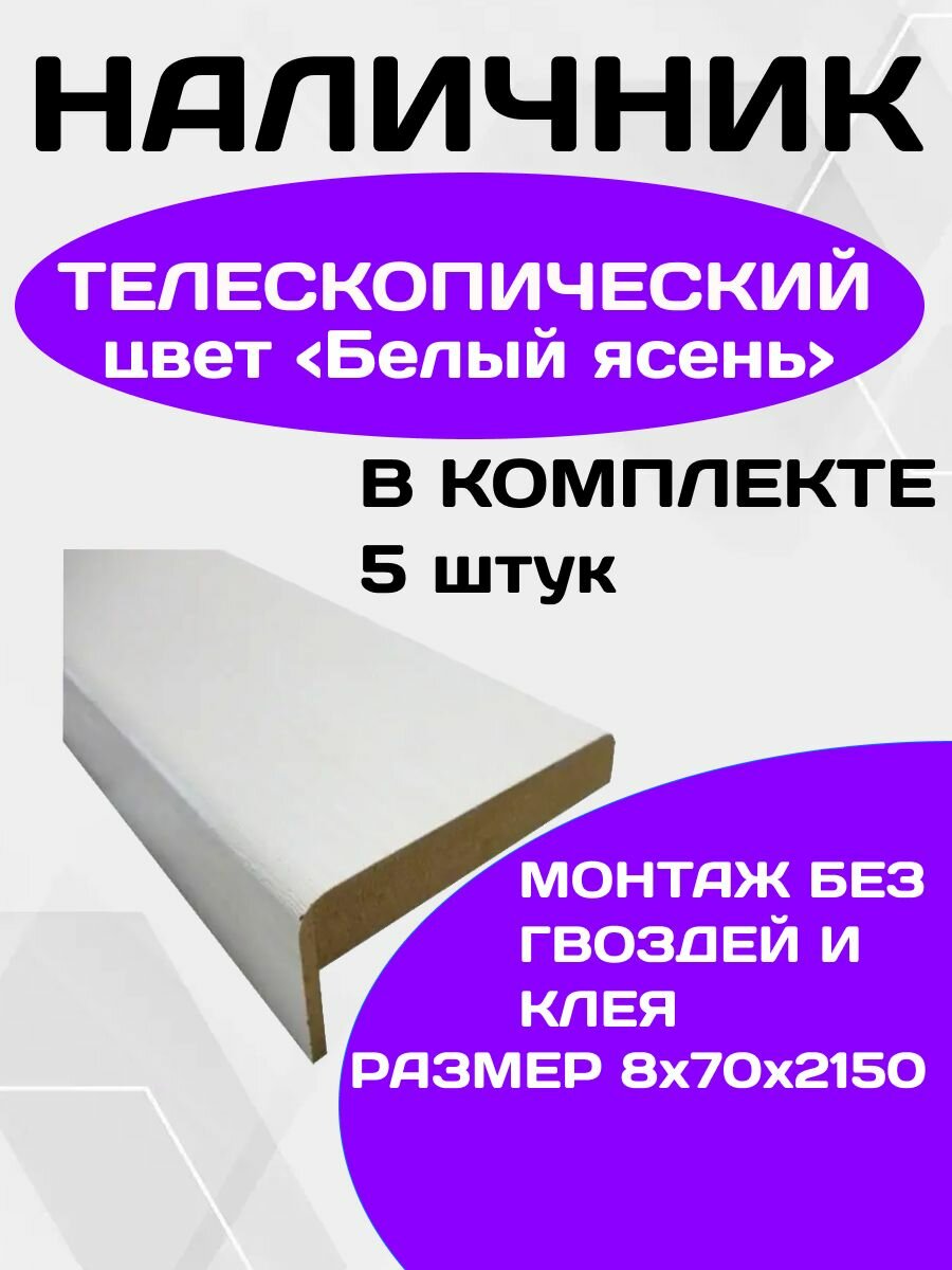 Купить Наличники для дверей телескопический, цвет - белый ясень , 5 шт