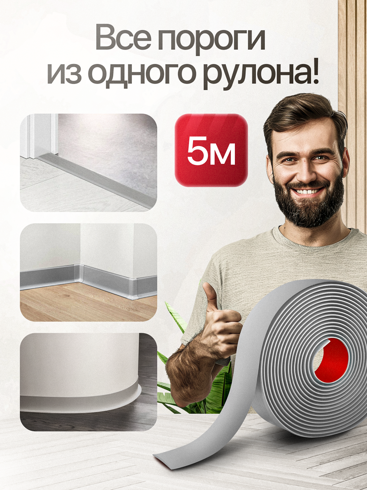 СохранитьНаличник для дверей самоклеющиеся 5м ПВХ; гибкий плинтус для потолка и пола, цвет светло-серый интересное: