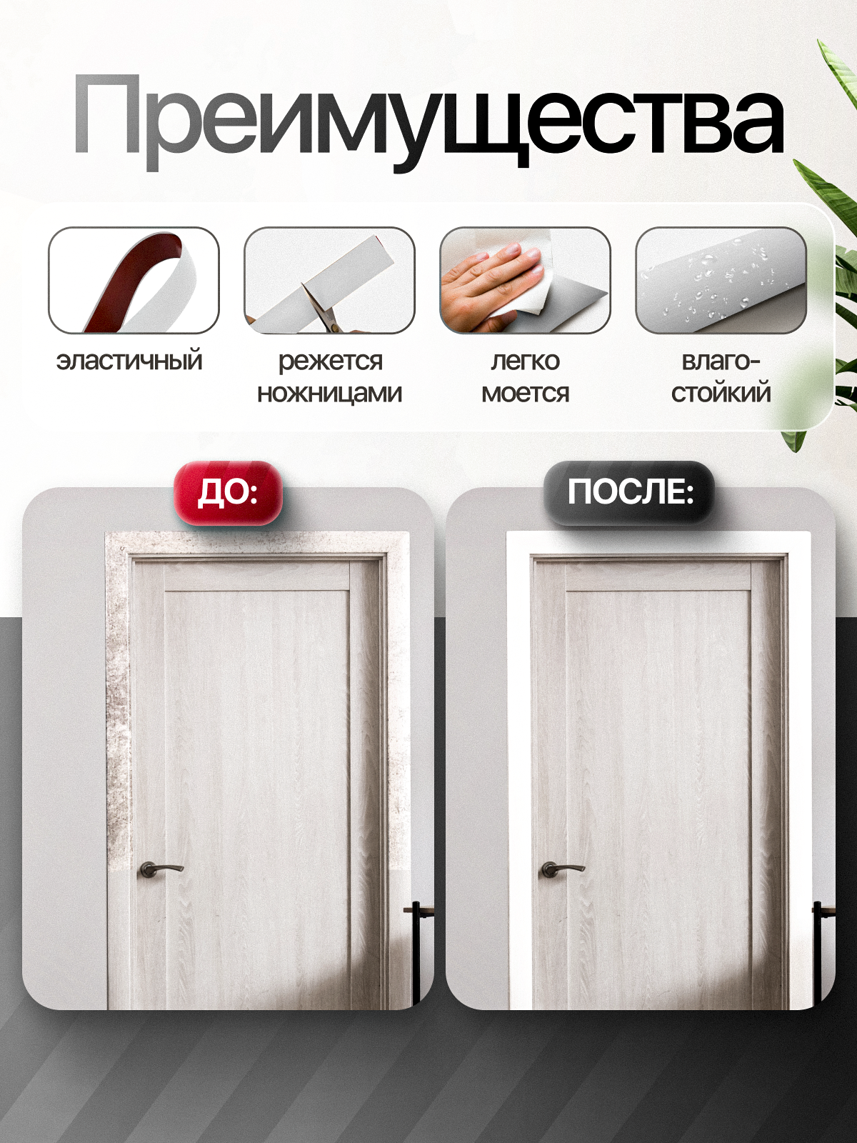 СохранитьНаличник для дверей самоклеющиеся 5м ПВХ; гибкий плинтус для потолка и пола, цвет белый интересное: