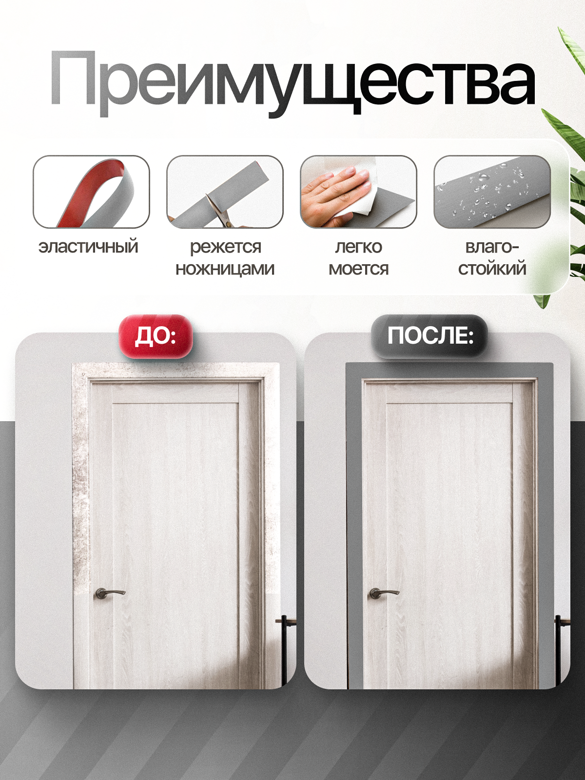 СохранитьНаличник для дверей самоклеющиеся 3м ПВХ; гибкий плинтус для потолка и пола, цвет светло-серый интересное: