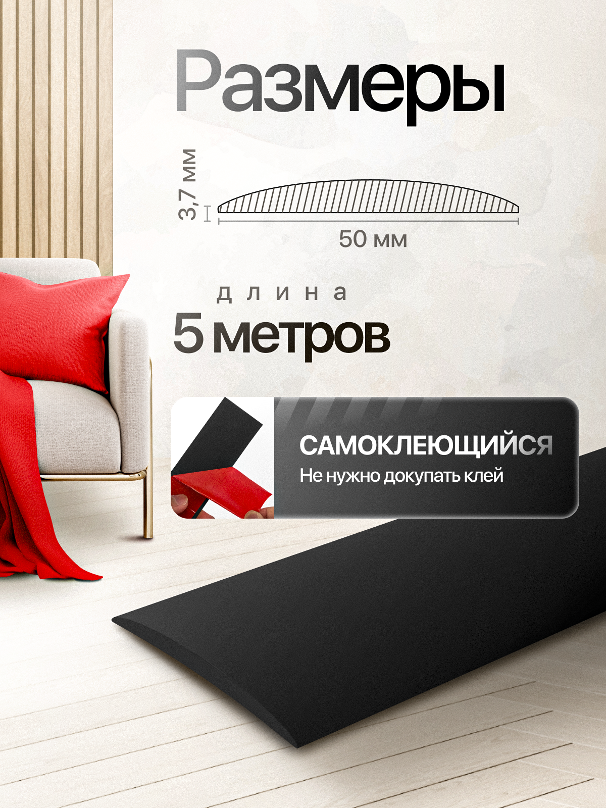 СохранитьНаличник для дверей самоклеющиеся 5м ПВХ; гибкий плинтус для потолка и пола, цвет чёрный интересное: