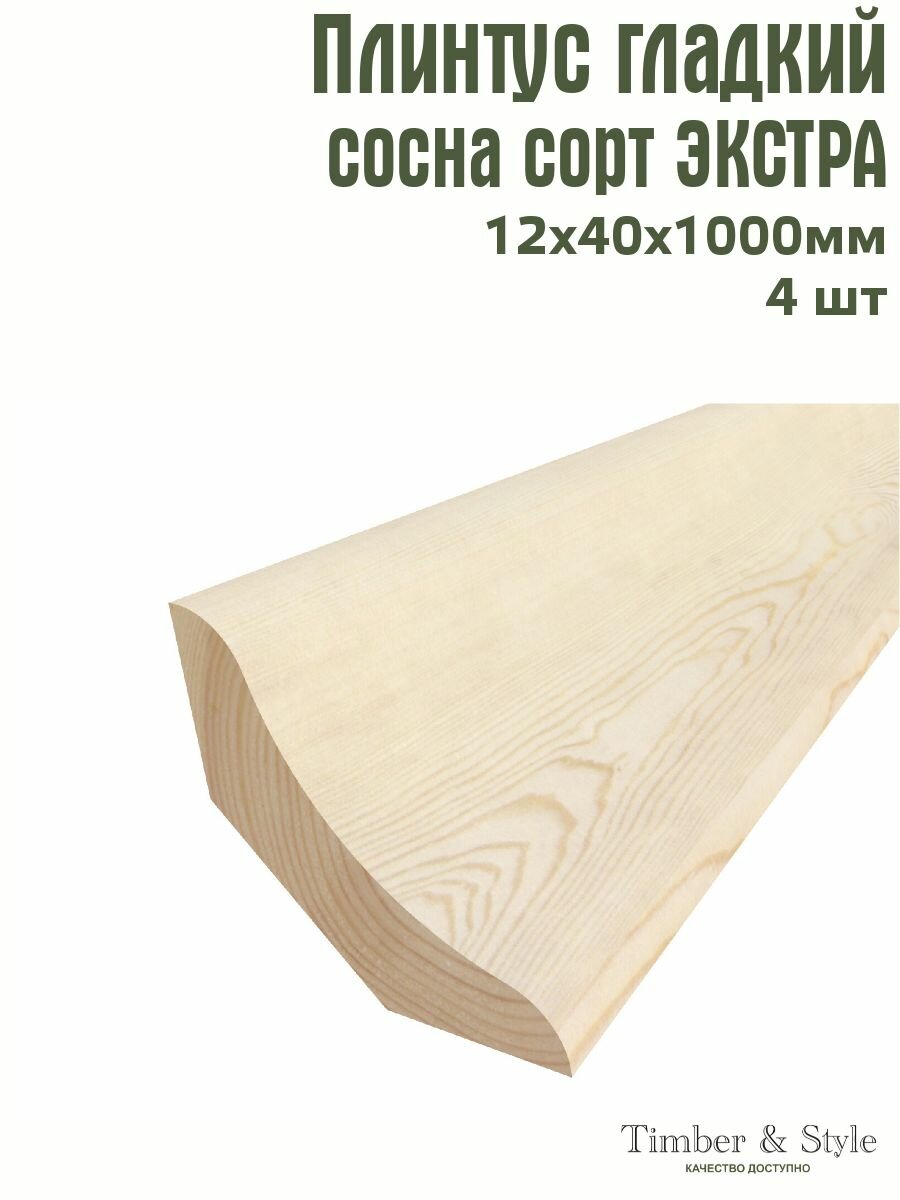 Плинтус напольный деревянный гладкий Timber&Style 12х40х1000 мм, комплект из 4 шт. сорт Экстра интересное: