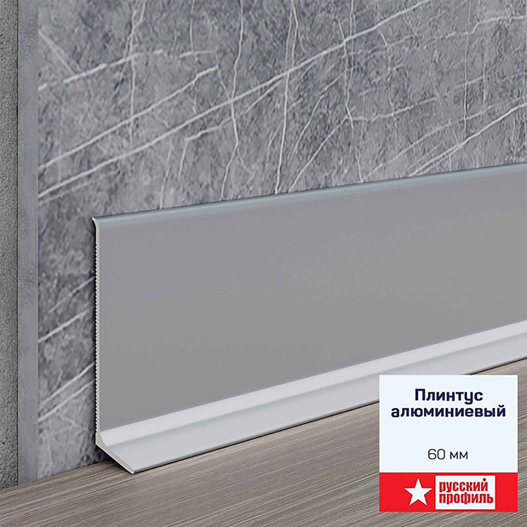 Купить Плинтус напольный L -образный, высота 60 мм, длина 250 см, Серебро матовое, 5 шт